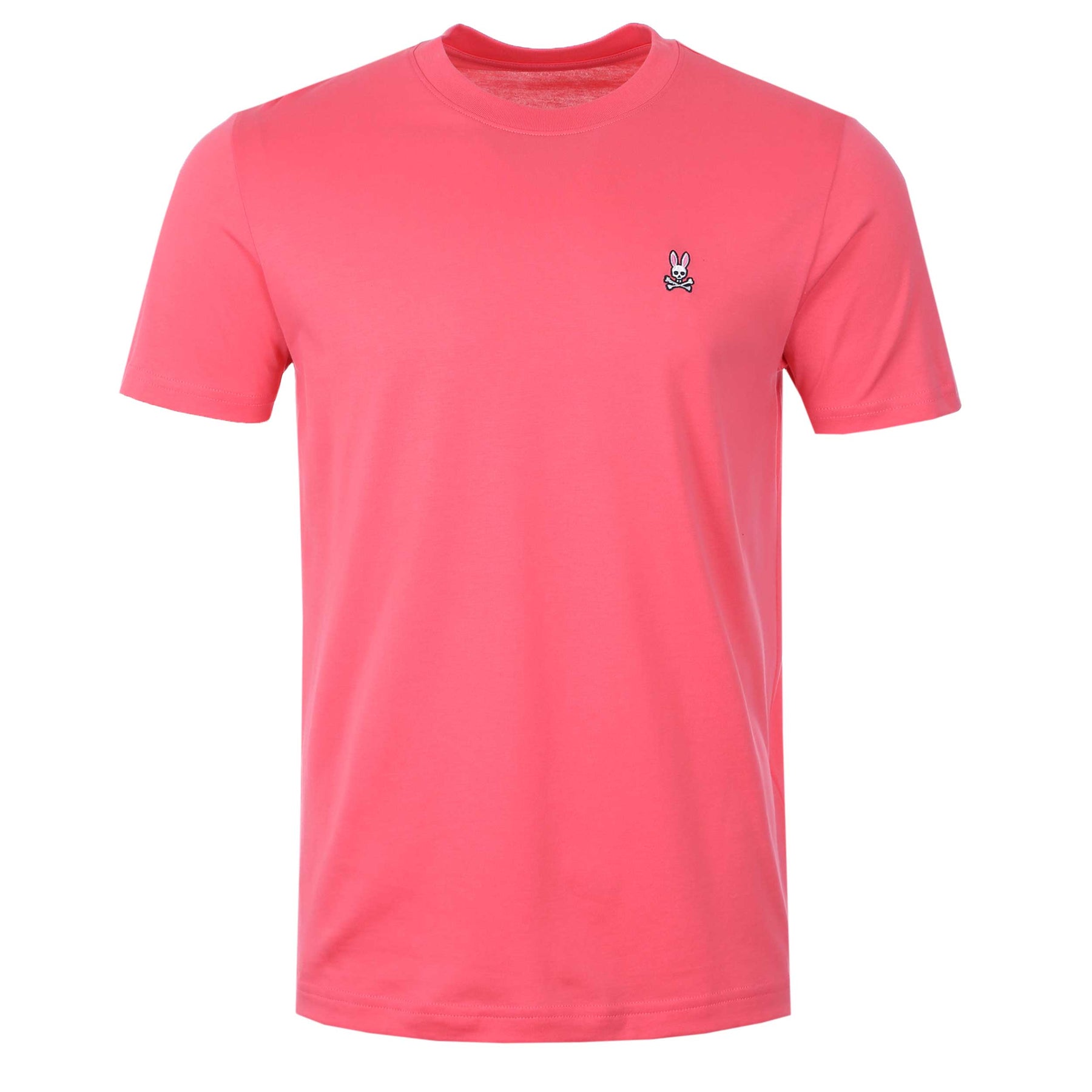 Psycho Bunny Classic T-Shirt in Camellia Rose Pink. Classic T-Shirt by Psycho Bunny. Plain Design with a crew neck and short sleeves. Finished off with a signature logo on the left breast.