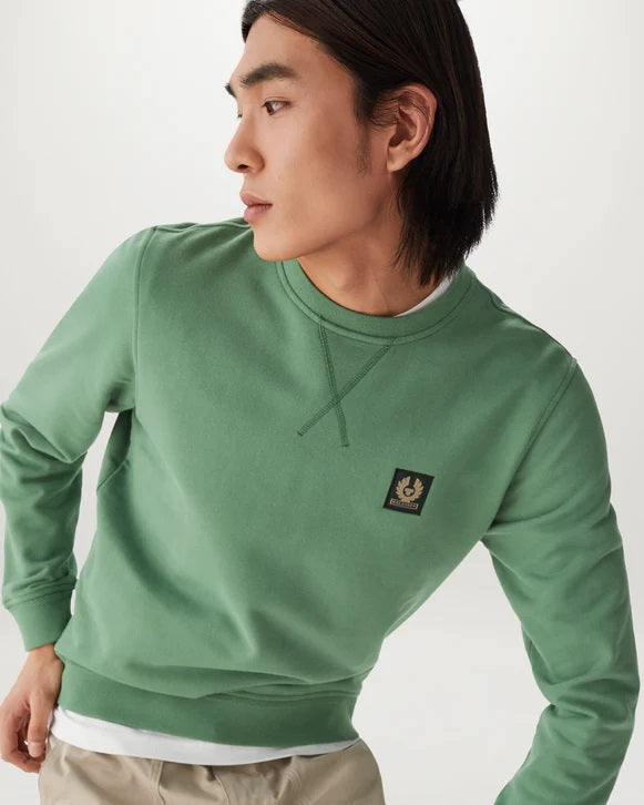 Belstaff Classic Sweat Top in Graph Green. Sweat Top by Belstaff. This crew neck, long sleeve sweat top features ribbed collar and cuffs with a plain design. Finished with a Belstaff logo badge on the chest. Perfect for those casual days.