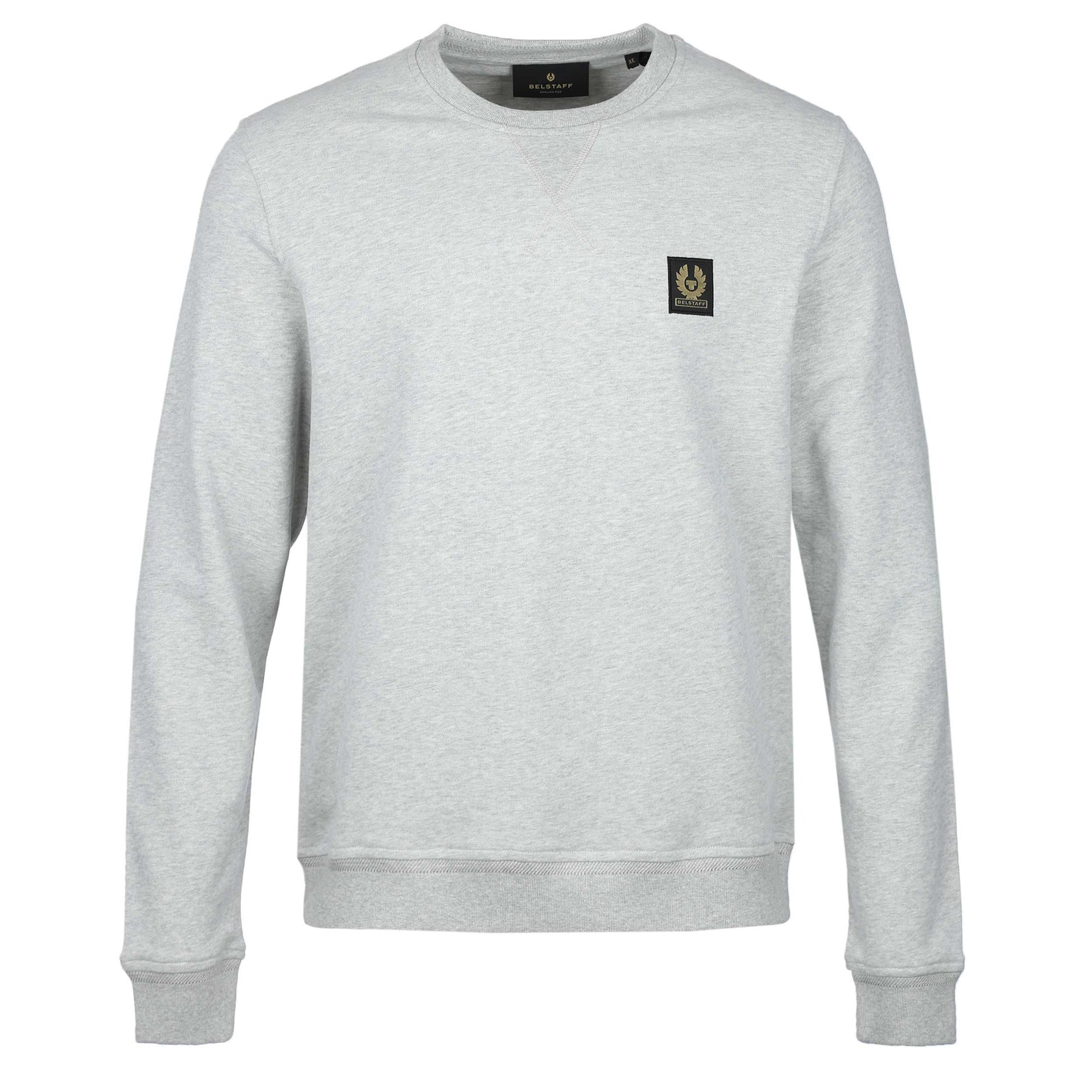 Belstaff Classic Sweat Top in Old Silver Heather. Sweat Top by Belstaff. This crew neck, long sleeve sweat top features ribbed collar and cuffs with a plain design. Finished with a Belstaff logo badge on the chest. Perfect for those casual days.