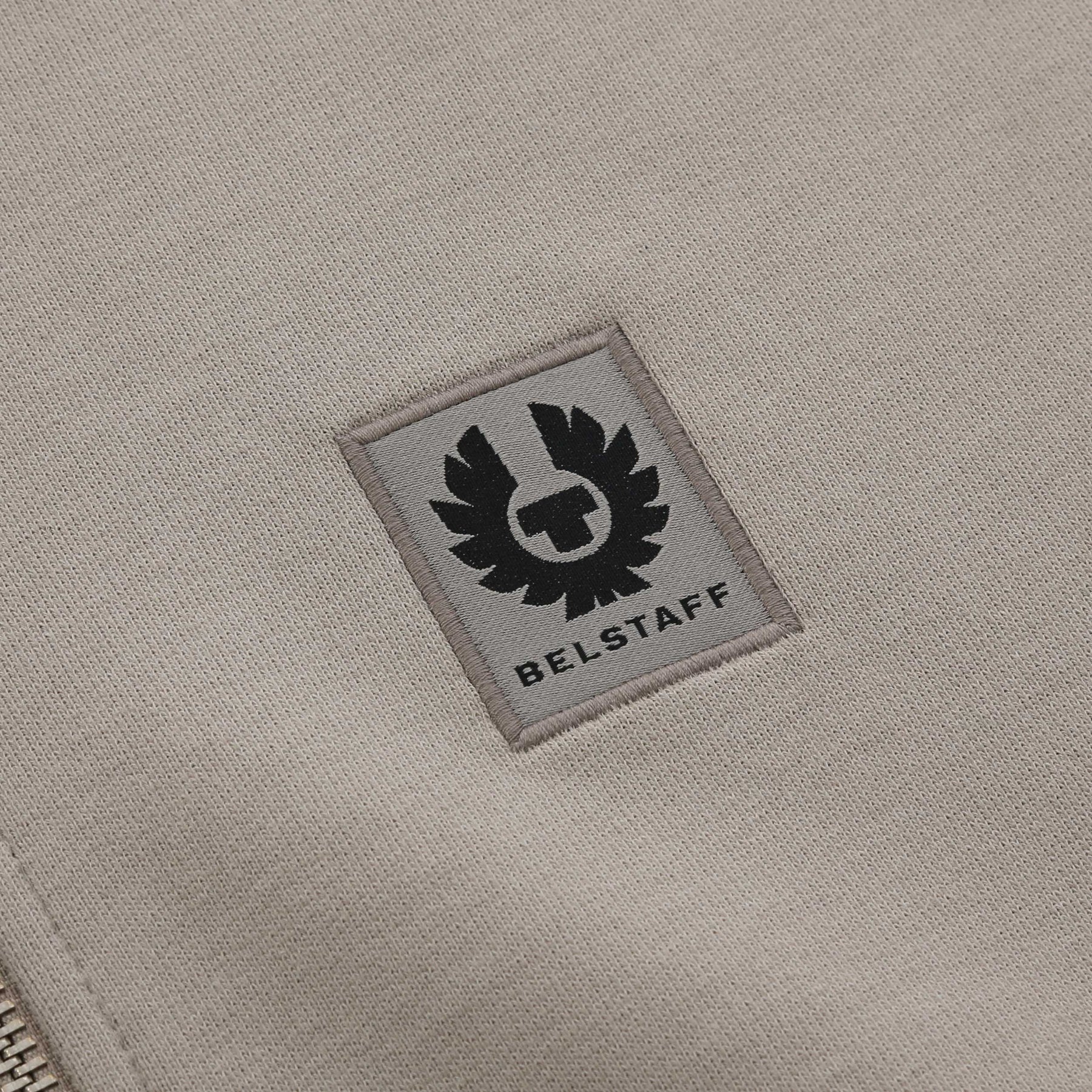 Belstaff Full Zip Sweat Top in Dark Sand. A zip up sweat top featuring a funnel neck collar which can be worn flat or zipped up. Ribbed cuffs and waistband. Finished with the signature Belstaff logo badge on the chest. Team up with sweat pants or jeans.