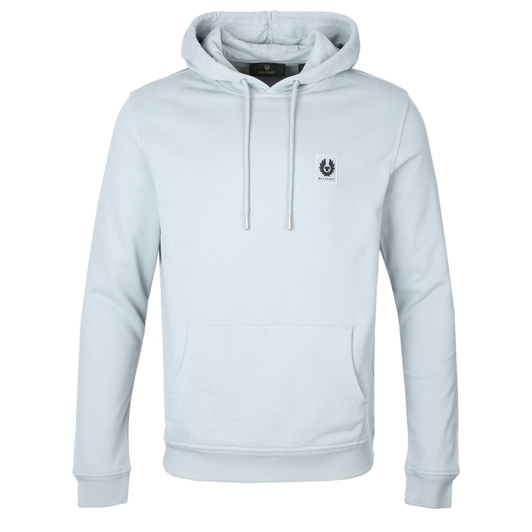 Belstaff Hoodie Sweat Top in Quarry Blue. A classic hoodie by Belstaff. With an adjustable hood with drawstrings and kangaroo pocket to the front. Finished with the Belstaff logo on the chest, perfect for everyday wear.