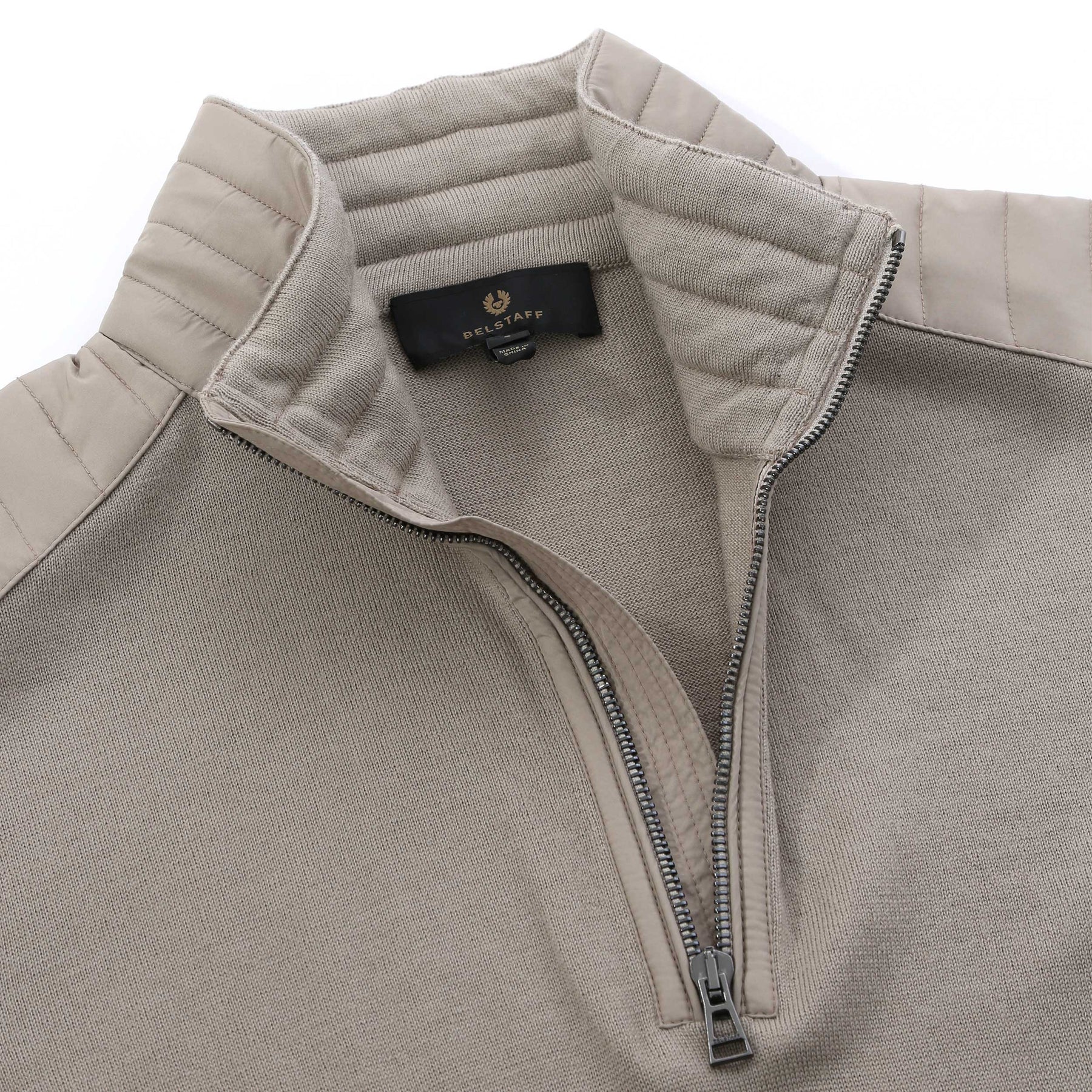 The Belstaff Kilmington Knitwear in Dark Sand features signature moto-inspired details, which provide a rugged yet refined look. The two-way fastening zip allows for easy wear, while the ribbed cuffs and waistband ensure a snug fit to retain warmth. The quilted shoulder, neck, and zip placket design adds a touch of sophistication and makes this cardigan stand out in any setting.