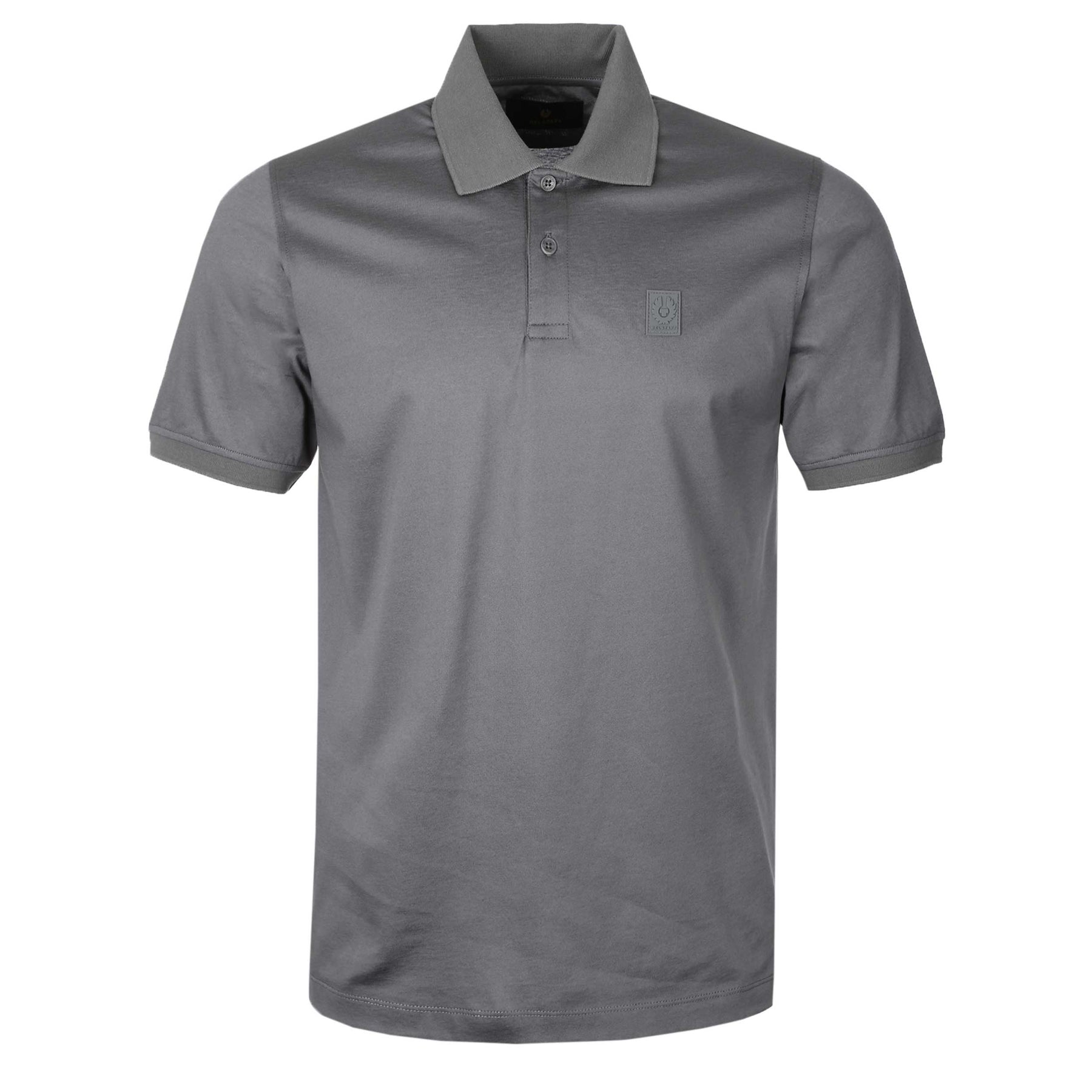 Belstaff Steel Polo Shirt in Tornado Grey. A classic polo shirt by Belstaff featuring a 2 button fastening placket with a tonal silicone Belstaff logo on the chest. Constructed from a soft mercerised cotton Perfect for everyday wear.