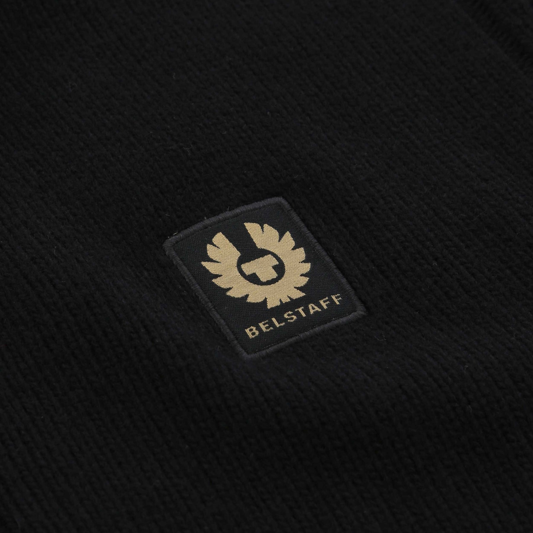 Belstaff Watch Quarter Zip Knitwear in Black. The perfect quarter zip knitwear, the watch Knitwear by Belstaff is made with 100% merino wool. Two way fastening zip placket with ribbed cuffs, neck and waistband. Finished with the tonal classic Belstaff logo to the lchest.