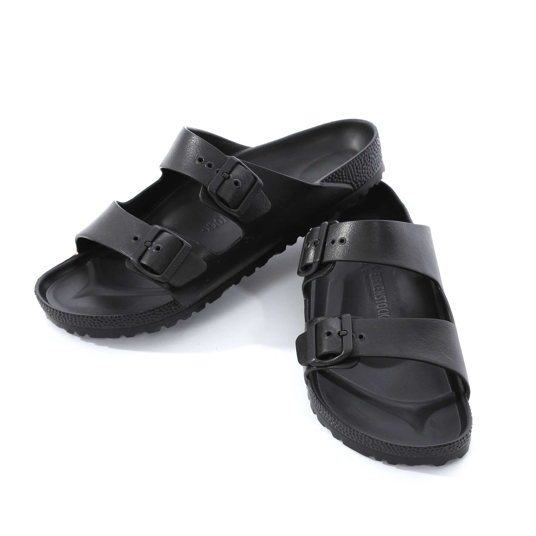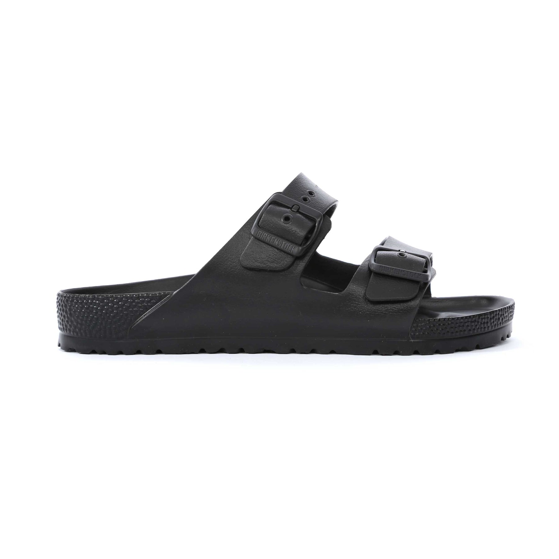 Birkenstock Arizona EVA Sandal in Black. The Birkenstock Arizona EVA reimagines the brand’s iconic two-strap sandal in an ultra-lightweight, modern material designed for everyday versatility. Based on the classic cork sandal silhouette, this version is crafted entirely from high-quality EVA, delivering the signature Birkenstock comfort in a flexible, water-friendly design. Engineered to be waterproof, ultra-lightweight and highly flexible, the EVA construction makes these sandals perfect for holidays, poolside wear, the beach or relaxed everyday use. The material is odour-neutral, skin-friendly and tested for harmful substances, ensuring comfort and peace of mind with every step.