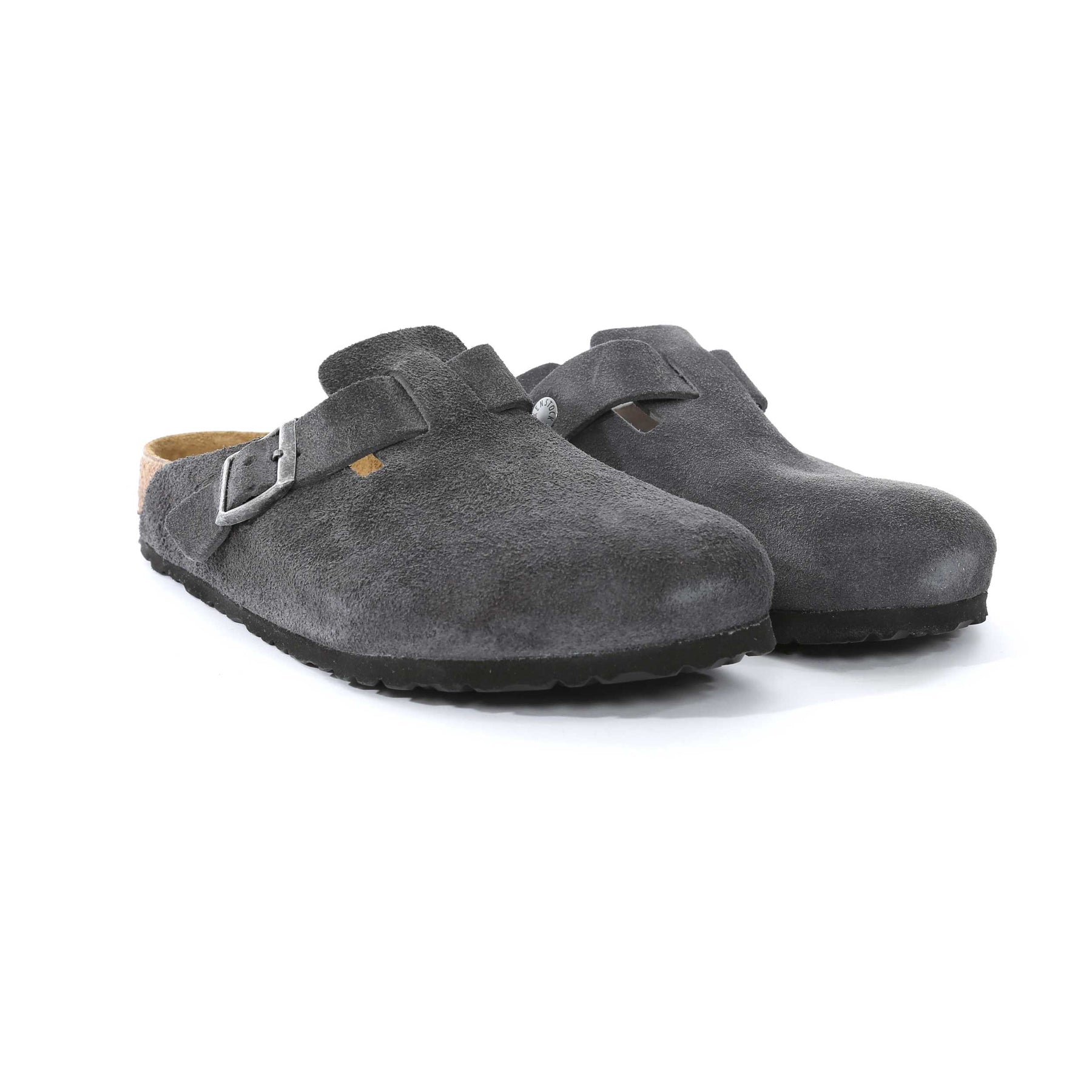 Birkenstock Boston Clogs in Charcoal. The Boston Clogs is a true footwear icon, renowned for its timeless design and exceptional comfort. Versatile enough to be worn throughout the year, this classic clog combines distinctive style with the legendary comfort that Birkenstock is known for. Crafted from suede leather, the upper features a natural open-selvage finish that gives each pair a unique, rugged character while enhancing durability. Inside, the signature anatomically shaped cork-latex footbed adapts to the shape of your foot over time, delivering personalised support and all-day comfort.
