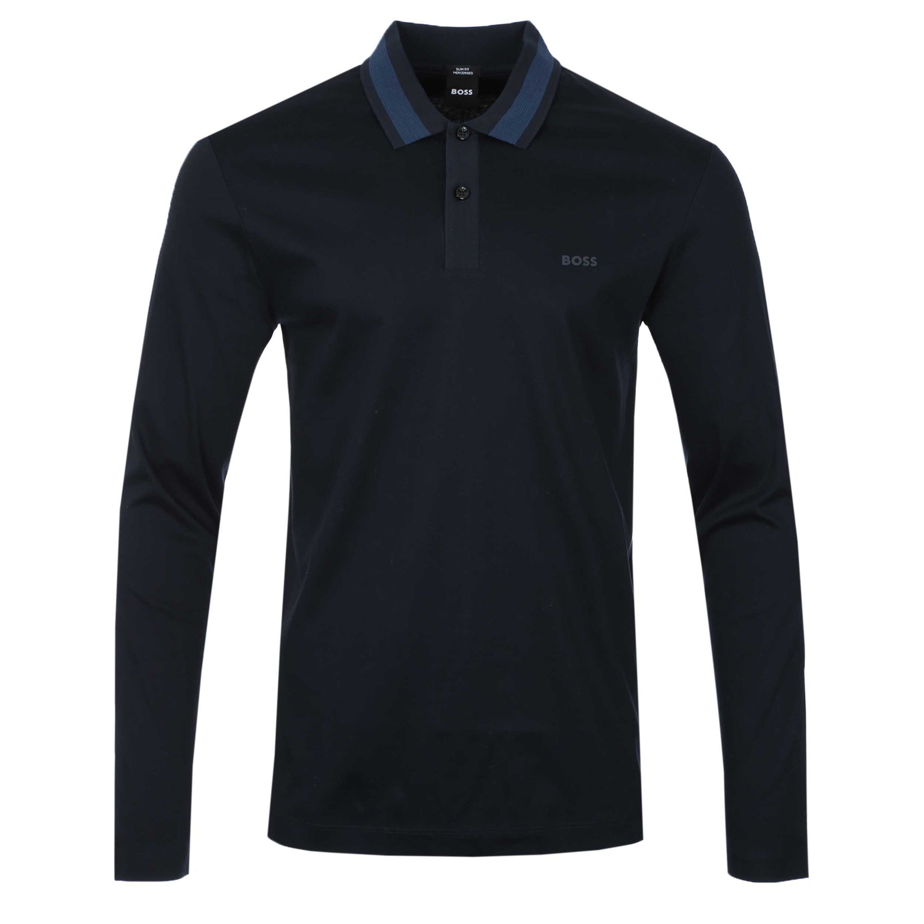 BOSS H Pleins 200 Long Sleeve Polo in Dark Blue