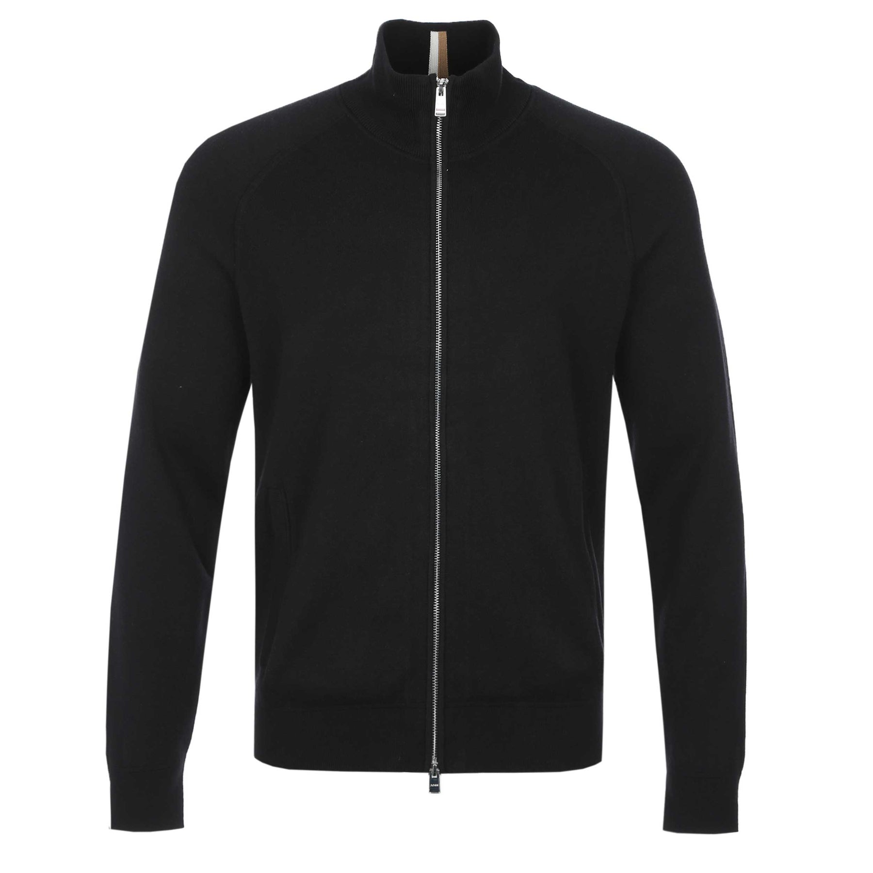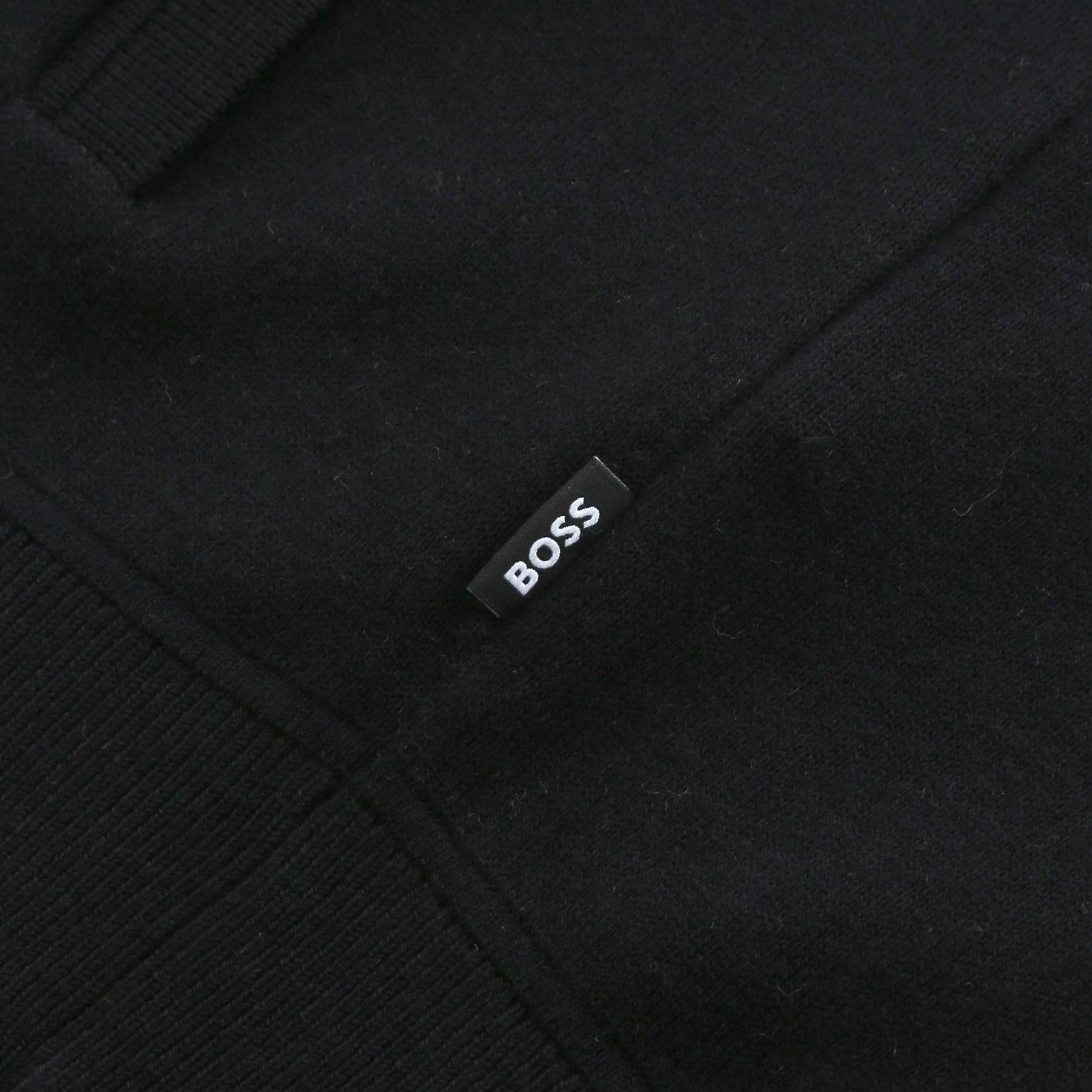 BOSS H Idino Knitwear in Black. A zip-front cardigan by BOSS, featuring ribbed detailing for a modern touch. Crafted in a comfortable regular fit, this versatile layer is constructed from a cotton and wool mix. Two zip pockets to the front of the knitwear. Finished with a BOSS logo tab to the side seam.