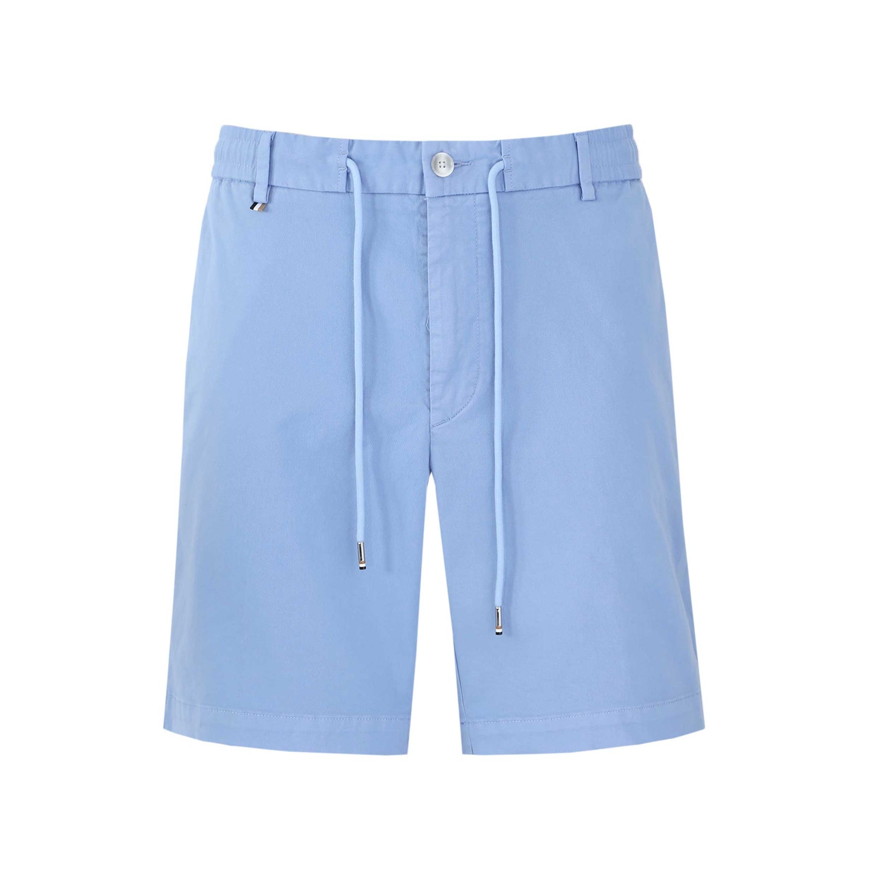 BOSS Kane DS Shorts Short in Sky Blue. A slim fit short by BOSS. This short arrives in a plain design with a regular rise. Featuring a partially elasticated waistband for comfort and a button fastening. 2 side slash pockets and 2 seat pockets. Drawstring fastening detail to the waistband. Tri-colour logo tab to the waistband. Can be teamed up with a t-shirt or shirt for those casual or smart occasions.