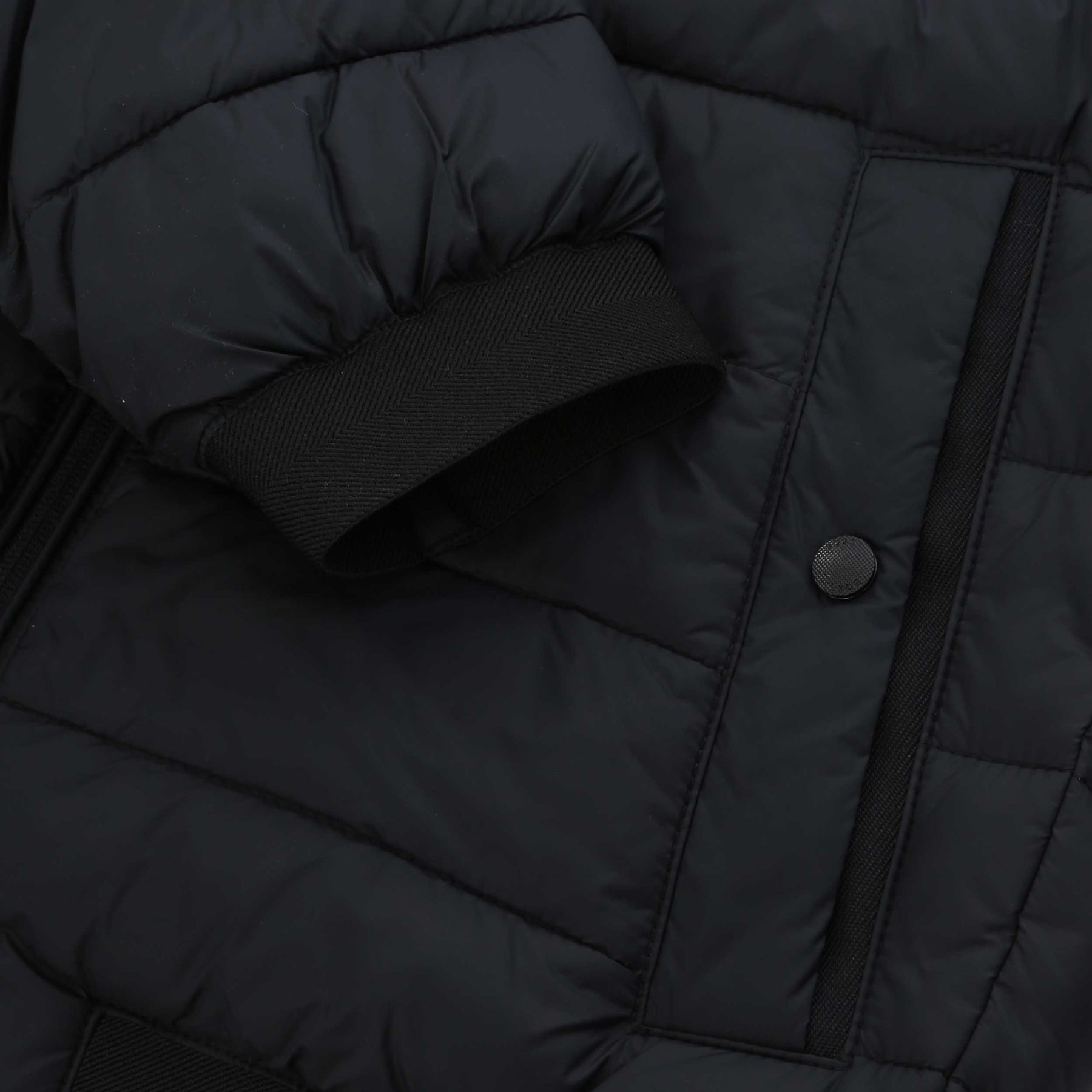 BOSS Odenis Jacket in Black. A padded style coat by BOSS. Arriving in a regular fit with a stand up collar, full zip fastening with a tonal black zip, and 2 front pockets with button fastenings. Elasticated cuffs to keep you warm. Finished with a BOSS logo badge on the sleeve.