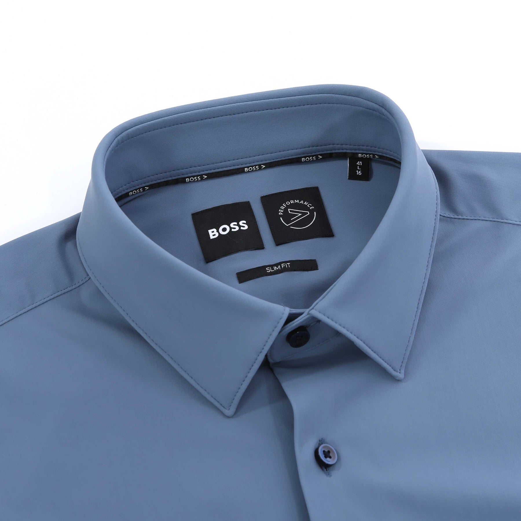 BOSS P Hank S Kent C1 222 Shirt in Bright Blue. A long sleeve BOSS shirt in a slim fit. Featuring a full button fastening and adjustable rounded cuffs. Crafted from a soft performance stretch material, designed for movement and breathability. Treated with an easy-iron finish.