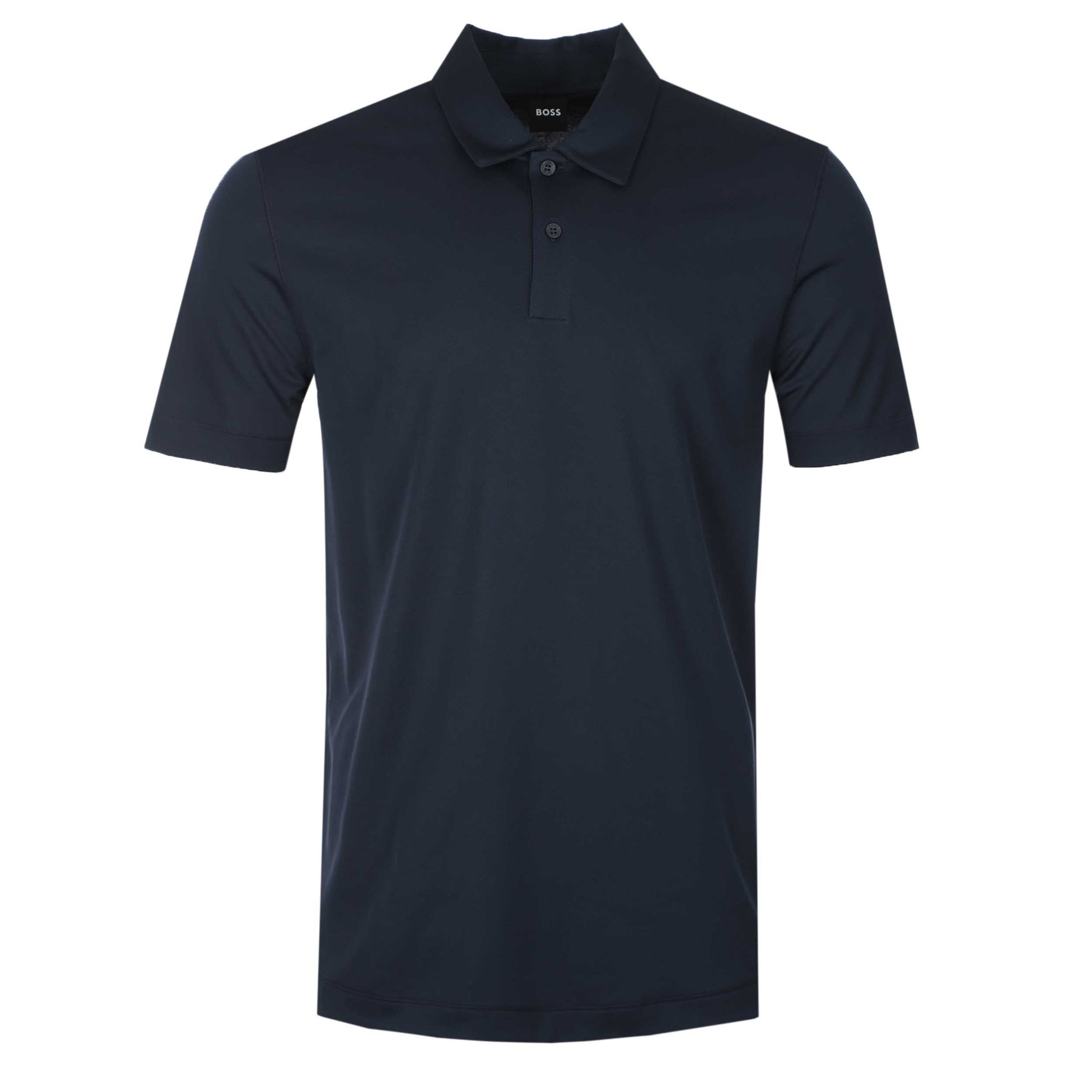 BOSS P Paino 152 Polo Shirt in Dark Blue. The BOSS P Paino 152 Polo Shirt in Dark Blue delivers clean, modern style with all-day comfort. Cut in a regular fit, it’s crafted from a breathable, lightweight fabric that keeps you cool on warmer days while maintaining a smooth, refined look. The minimalist design makes it a versatile go-to for smart-casual dressing, pairing effortlessly with jeans, shorts or tailored trousers. Subtle BOSS detailing completes the look, making this an essential polo for everyday designer style.
