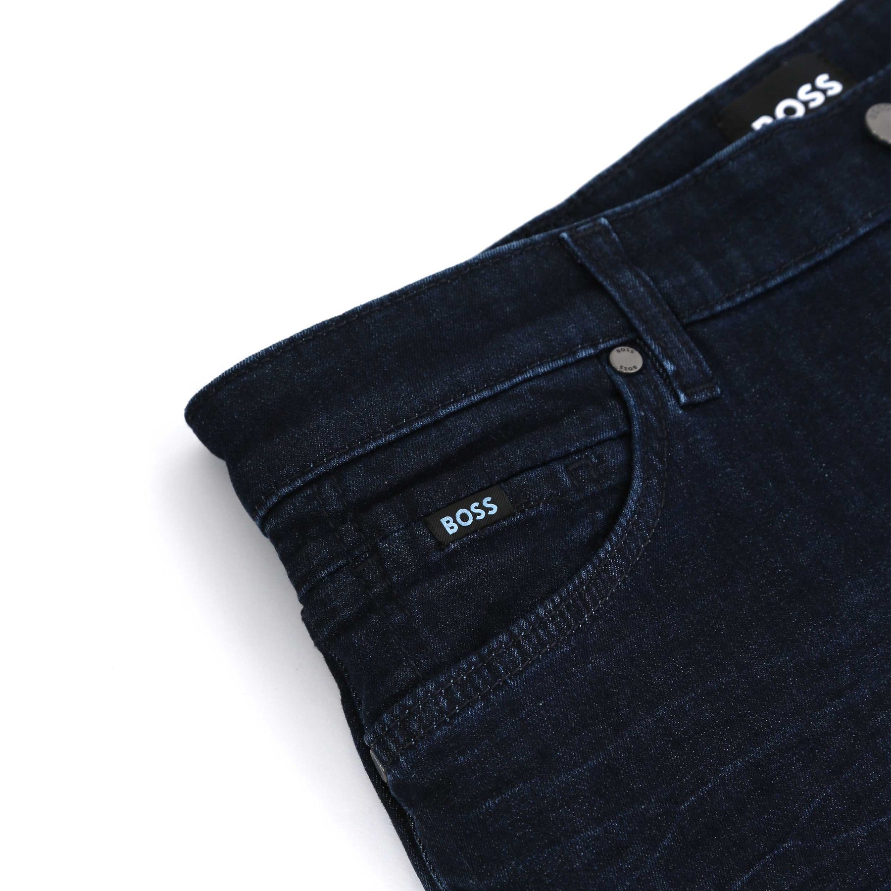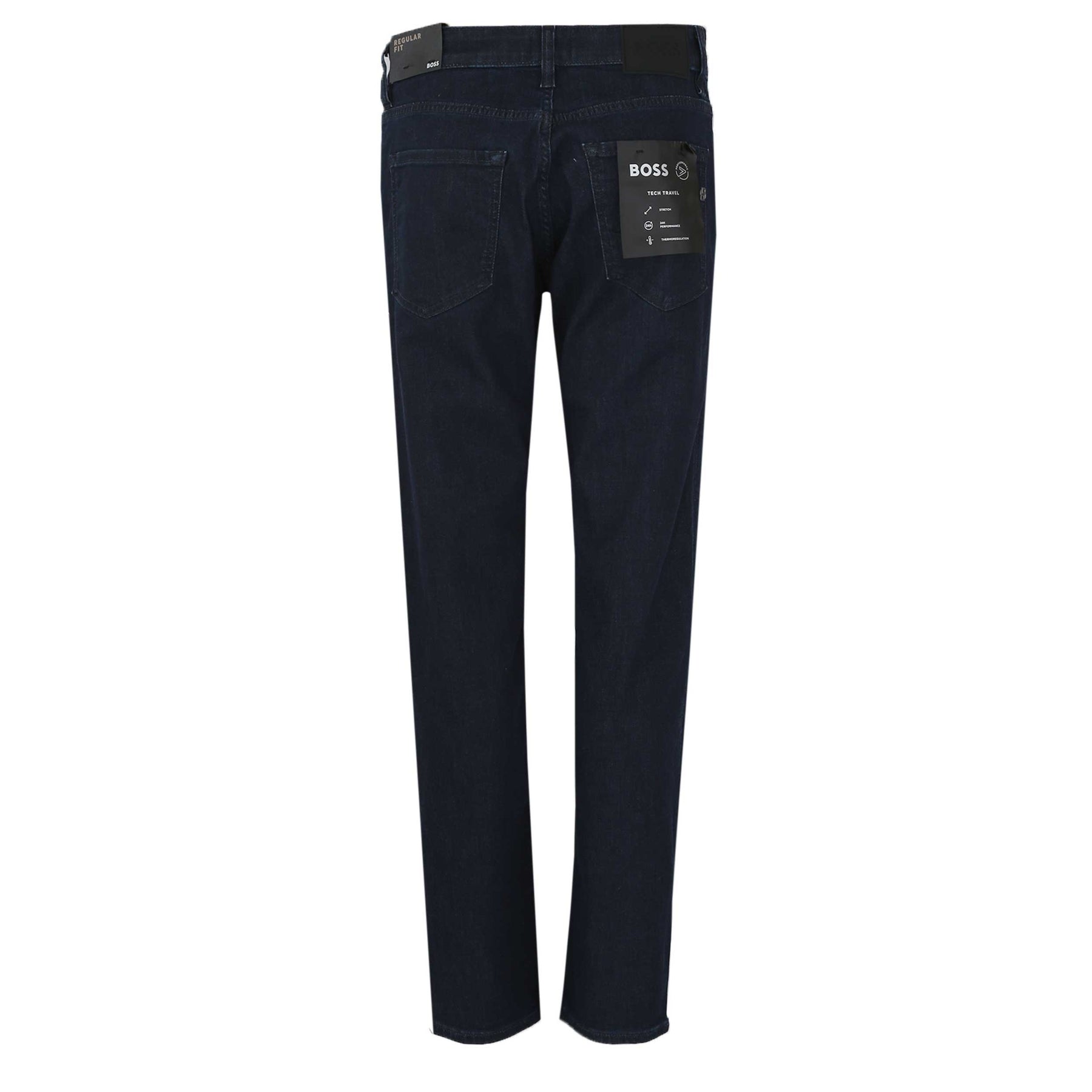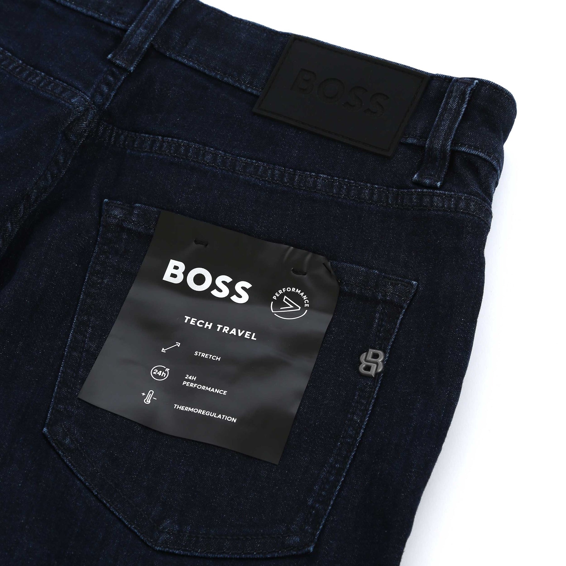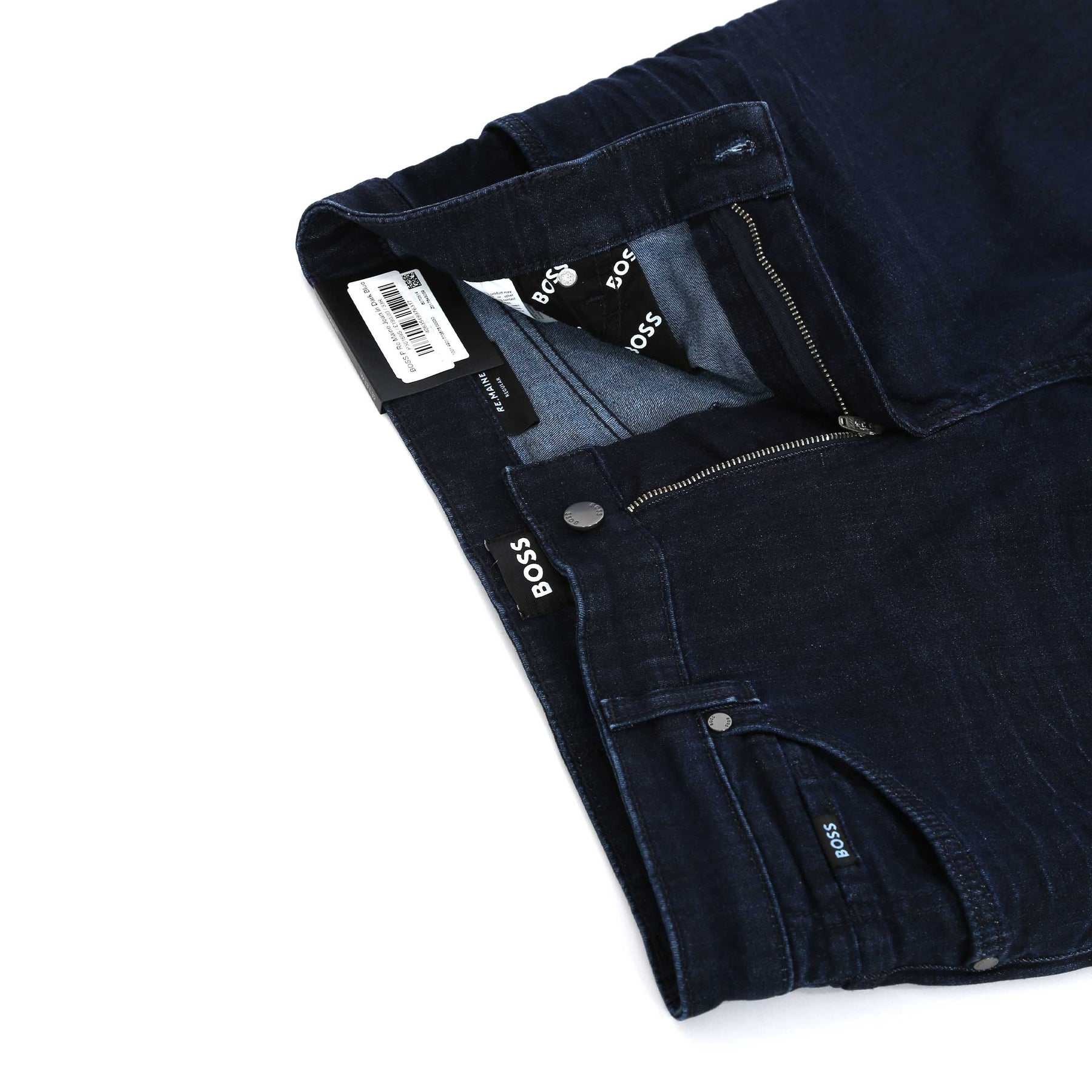BOSS P Re Maine Jean in Dark Blue. BOSS Re Maine jean arrives in a regular fit, made from a comfort stretch denim. It has a regular zip fly fastening with button to waistband. Other features include straight cut legs and a classic 5 pocket jean design. The perfect jean to wear casual, or smarten up by layering up with a shirt and jacket combination.
