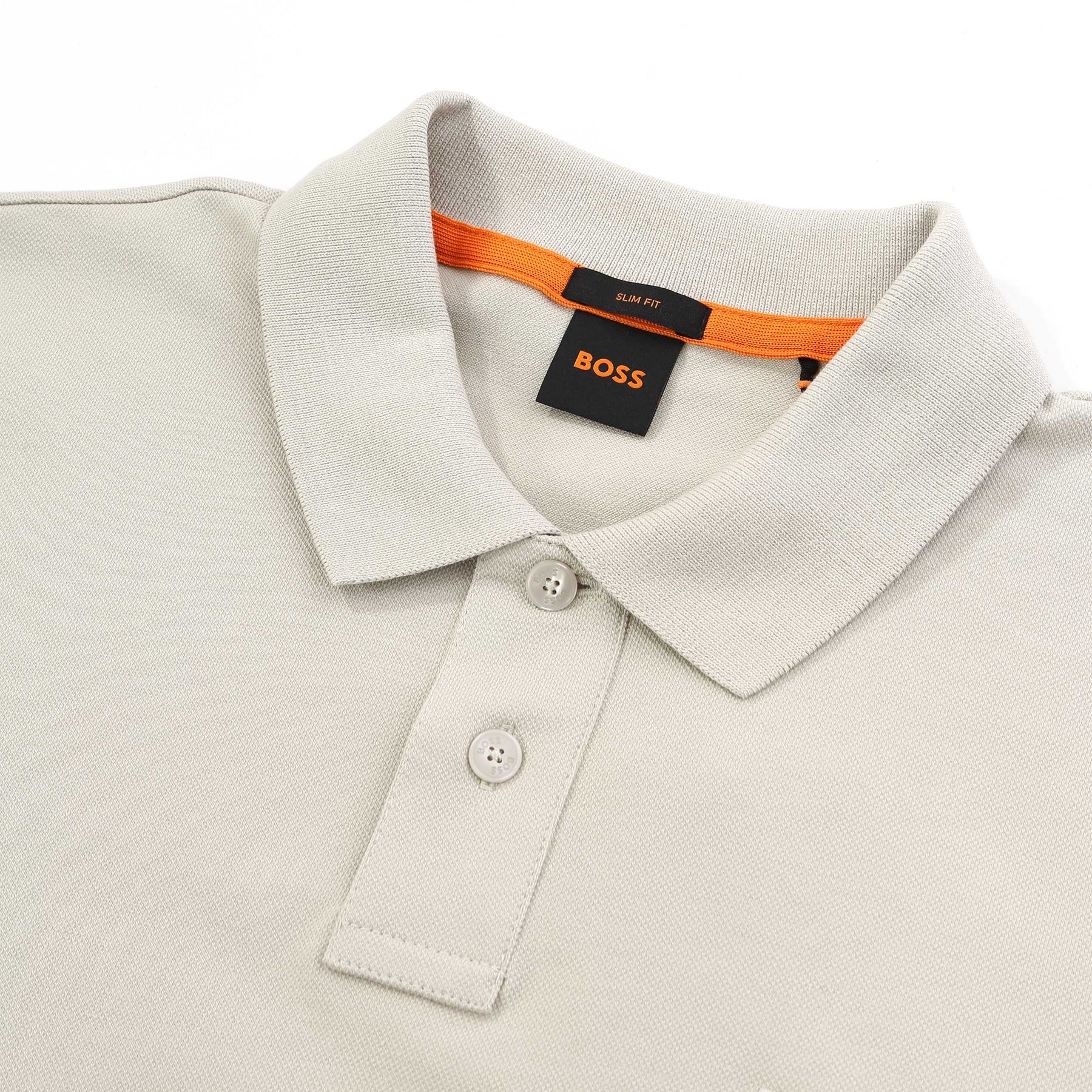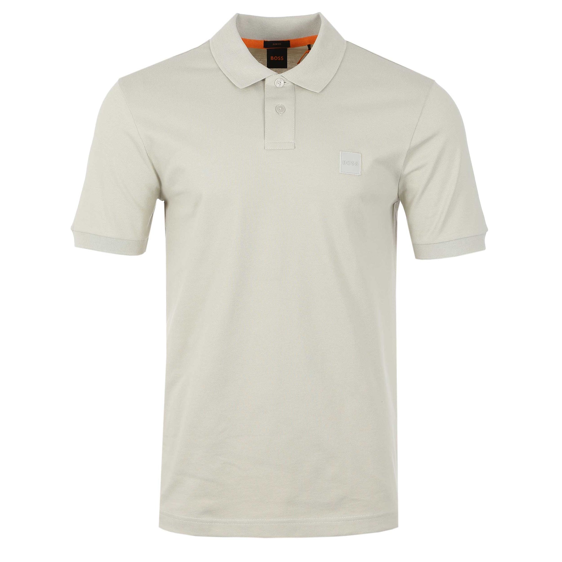 BOSS Passenger Polo Shirt in Light Beige. A slim fit Hugo Boss polo shirt with a Classic Polo collar. This short sleeve polo shirt arrives finished off with a 3 button placket. BOSS label logo to the chest. Ribbed collar and cuffs. Perfect Casual polo shirt to be teamed up with either jeans or sweat pants.