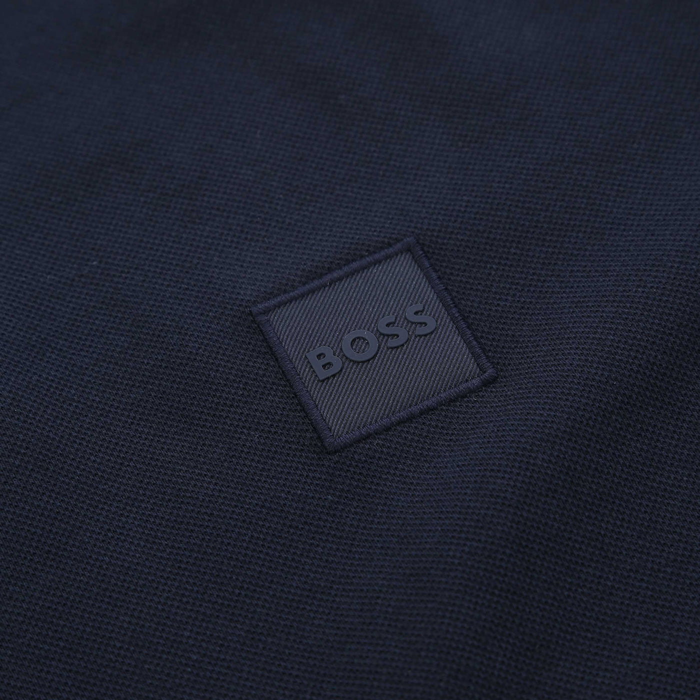 BOSS Passenger Polo Shirt in Navy. A slim fit Hugo Boss polo shirt with a Classic Polo collar. This short sleeve polo shirt arrives finished off with a 3 button placket. BOSS label logo to the chest. Ribbed collar and cuffs. Perfect Casual polo shirt to be teamed up with either jeans or sweat pants.