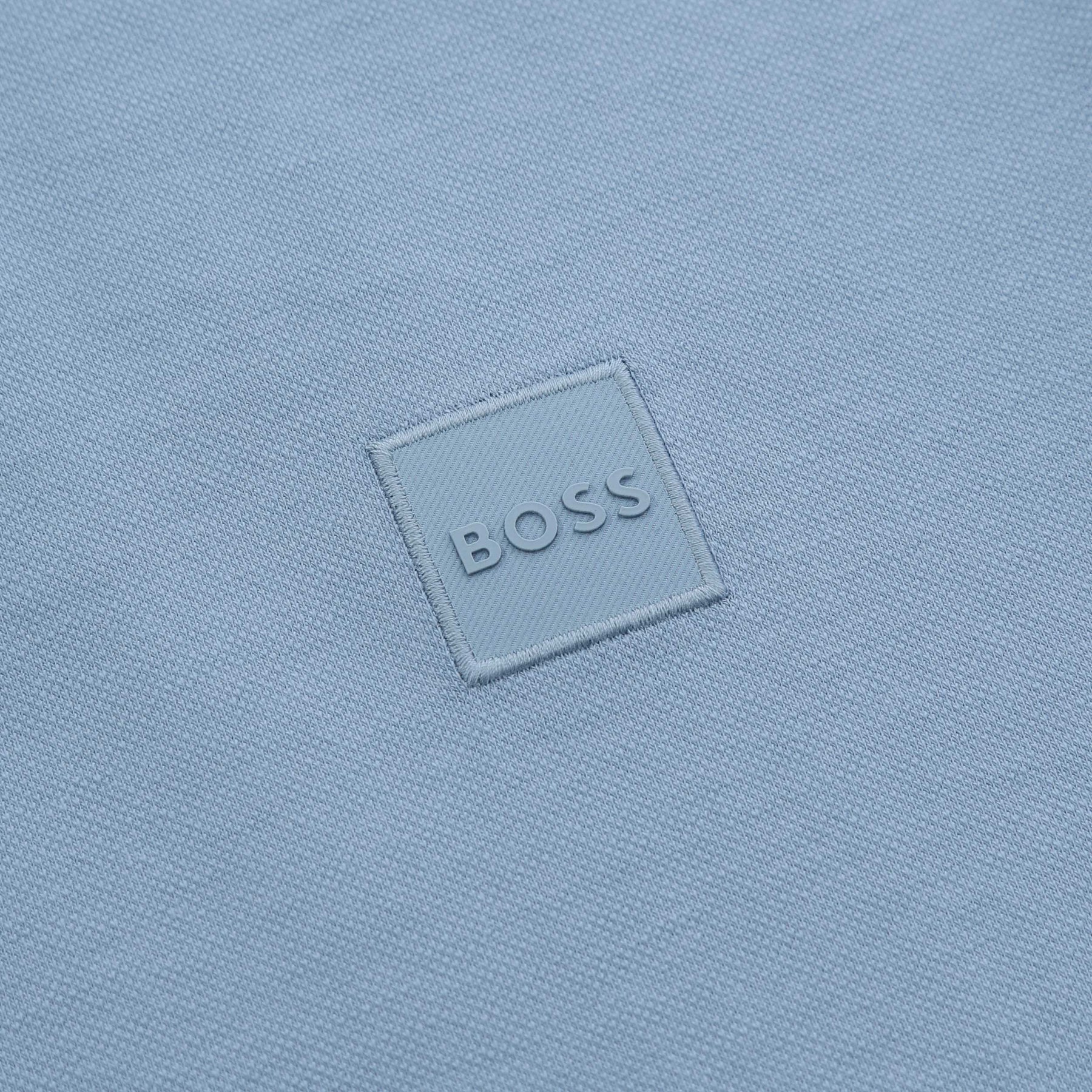 BOSS Passerby Long Sleeve Polo Shirt in Light Pastel Blue. A slim fit Hugo Boss polo shirt with a Classic Polo collar. This long sleeve polo shirt arrives finished off with a 3 button placket. BOSS label logo to the chest. Ribbed collar and cuffs. Perfect Casual polo shirt to be teamed up with jeans.