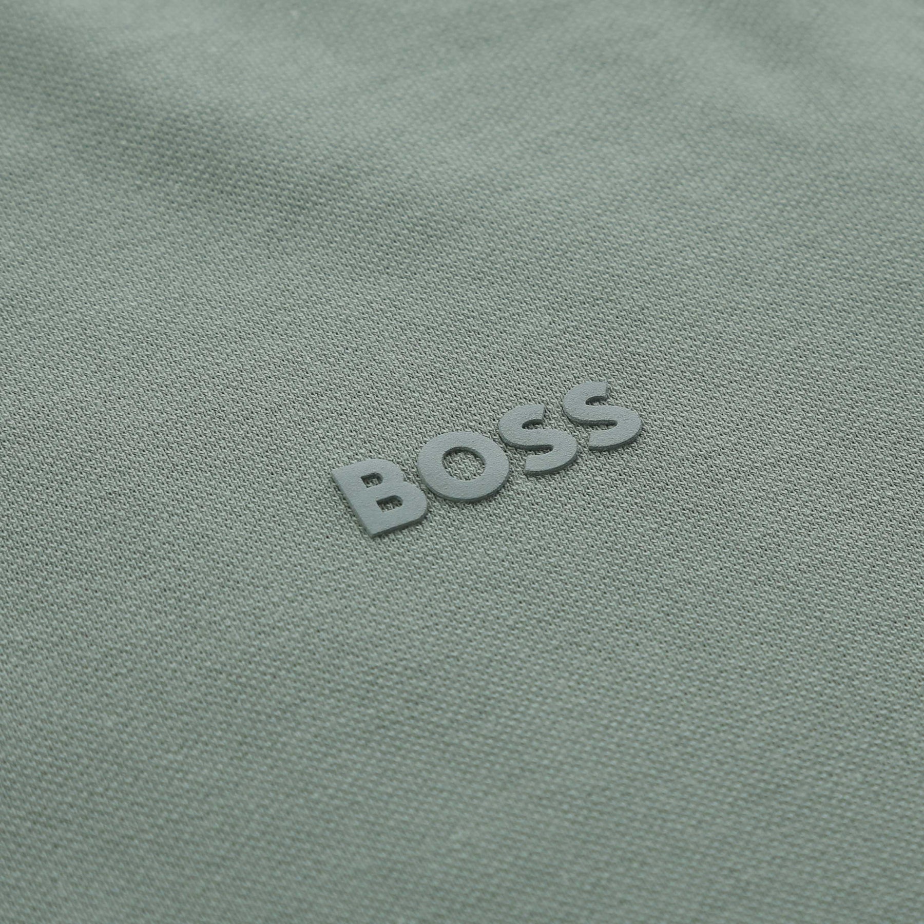 BOSS Pio 1 Polo Shirt in Open Green. The Hugo Boss Pio 1 Stretch Regular Fit Polo is a clean, modern essential built for everyday versatility. Cut from premium, breathable cotton with added stretch, it delivers a smooth feel, easy movement and all-day comfort. Designed with a classic collar and a two-button placket, it features refined stripe detailing on the trims for a fresh, contemporary edge. Finished with a sleek rubber BOSS logo at the chest, this regular-fit polo is the ideal upgrade for smart-casual outfits, weekend wear or understated designer styling.