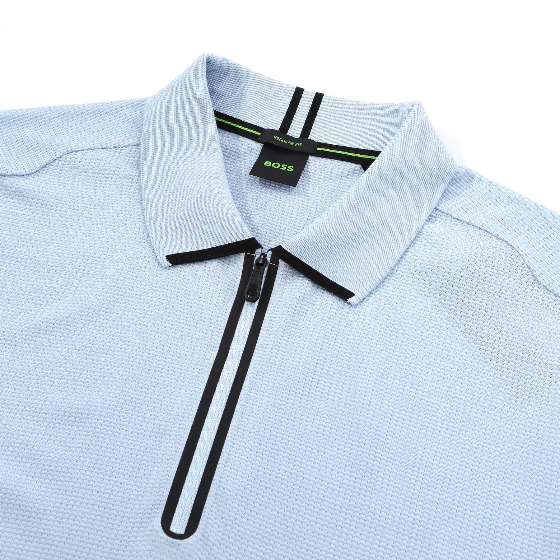 BOSS PL Terrace Zip Polo Shirt in Open Blue