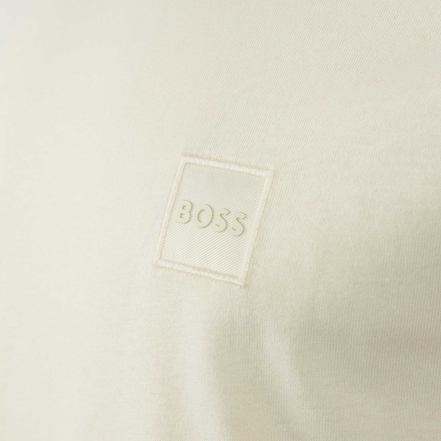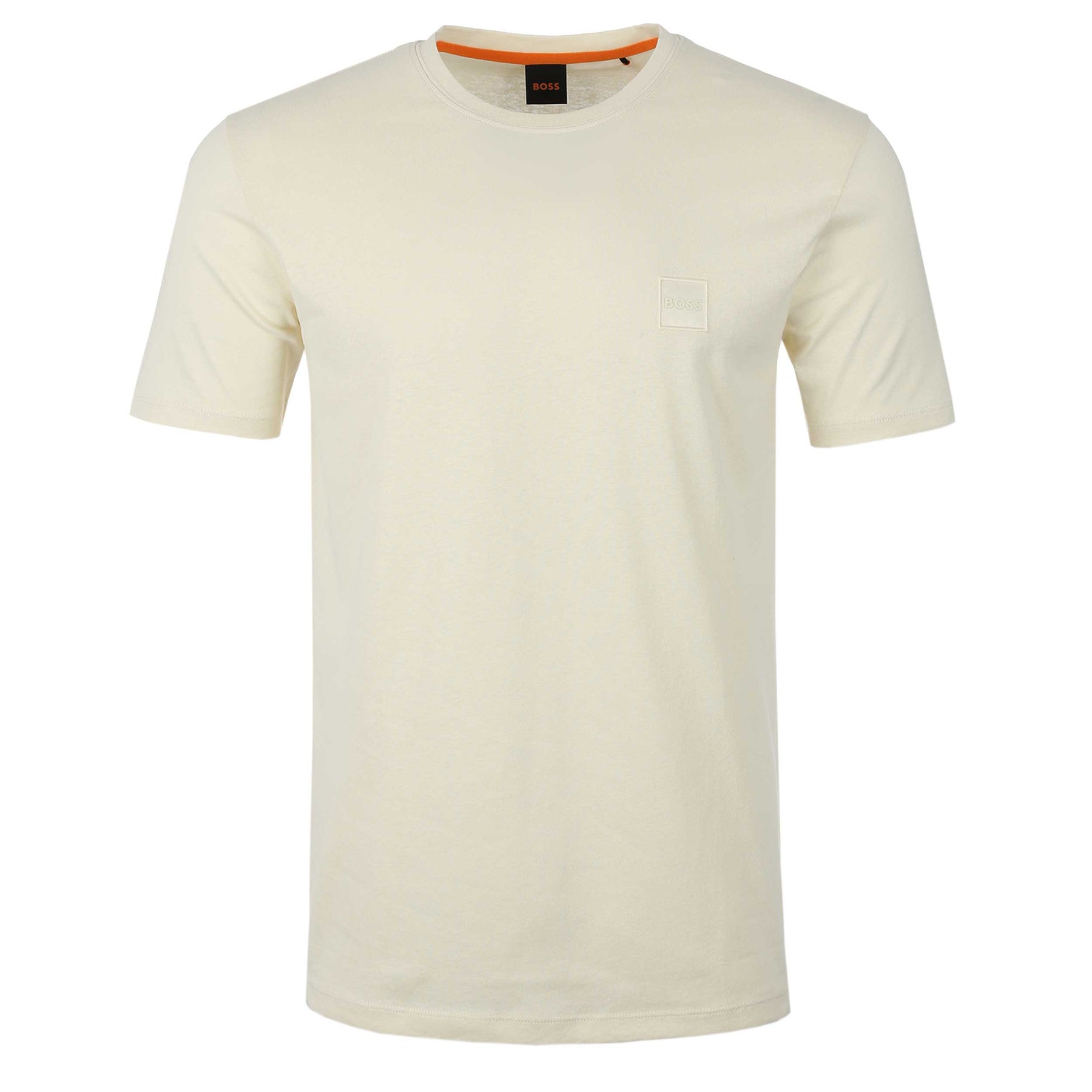 BOSS Tales T-Shirt in Light Beige. A classic T-Shirt by BOSS. This regular fit T-Shirt is easily worn and comfortable for everyday wear. It is detailed with a small tonal BOSS logo patch on the chest.