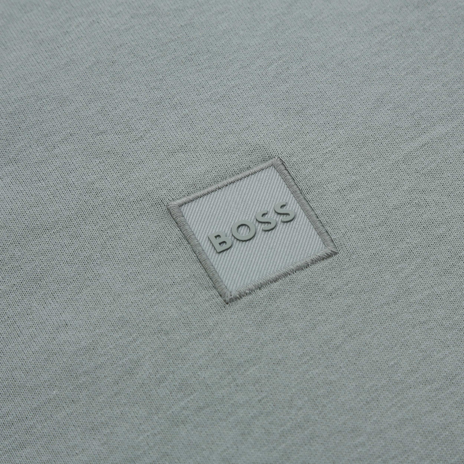 BOSS Tales T-Shirt in Sage Green. A classic T-Shirt by BOSS. This regular fit T-Shirt is easily worn and comfortable for everyday wear. It is detailed with a small tonal BOSS logo patch on the chest.