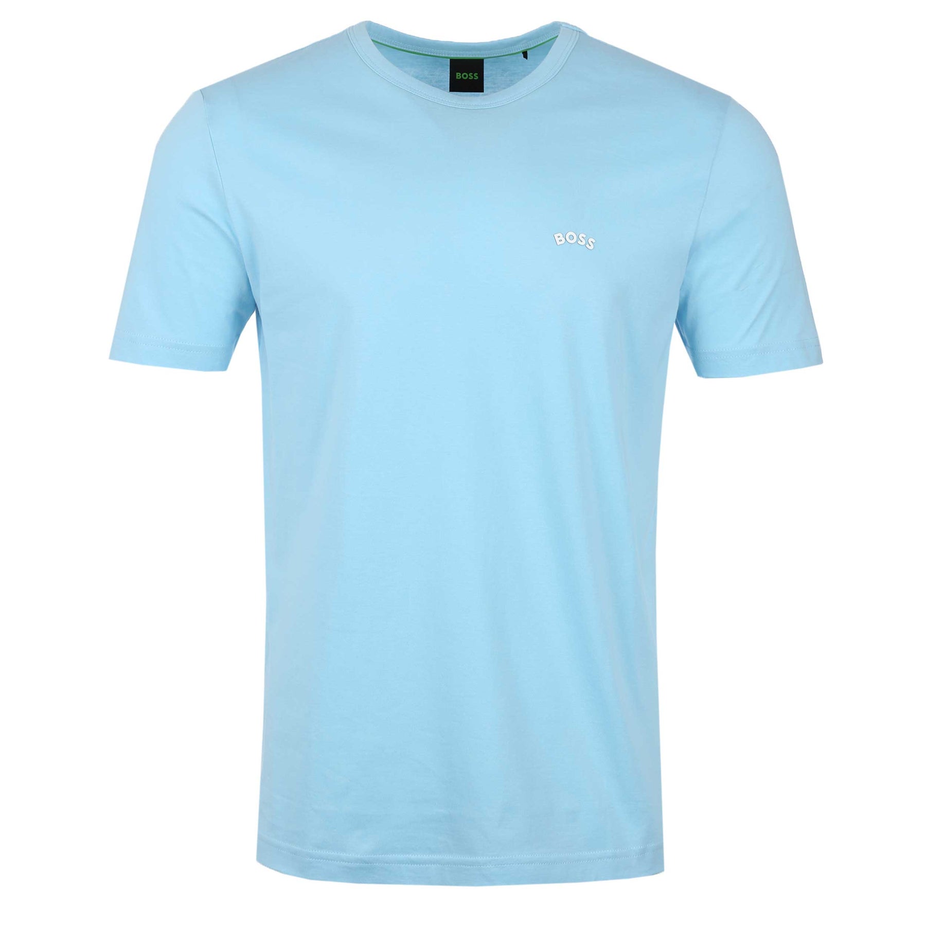 BOSS Tee Curved T Shirt in Sky Blue. Regular fit t-shirt by BOSS. Featuring a classic crew neck and short sleeves. Finished with a curved BOSS logo on chest. Perfect for everyday.