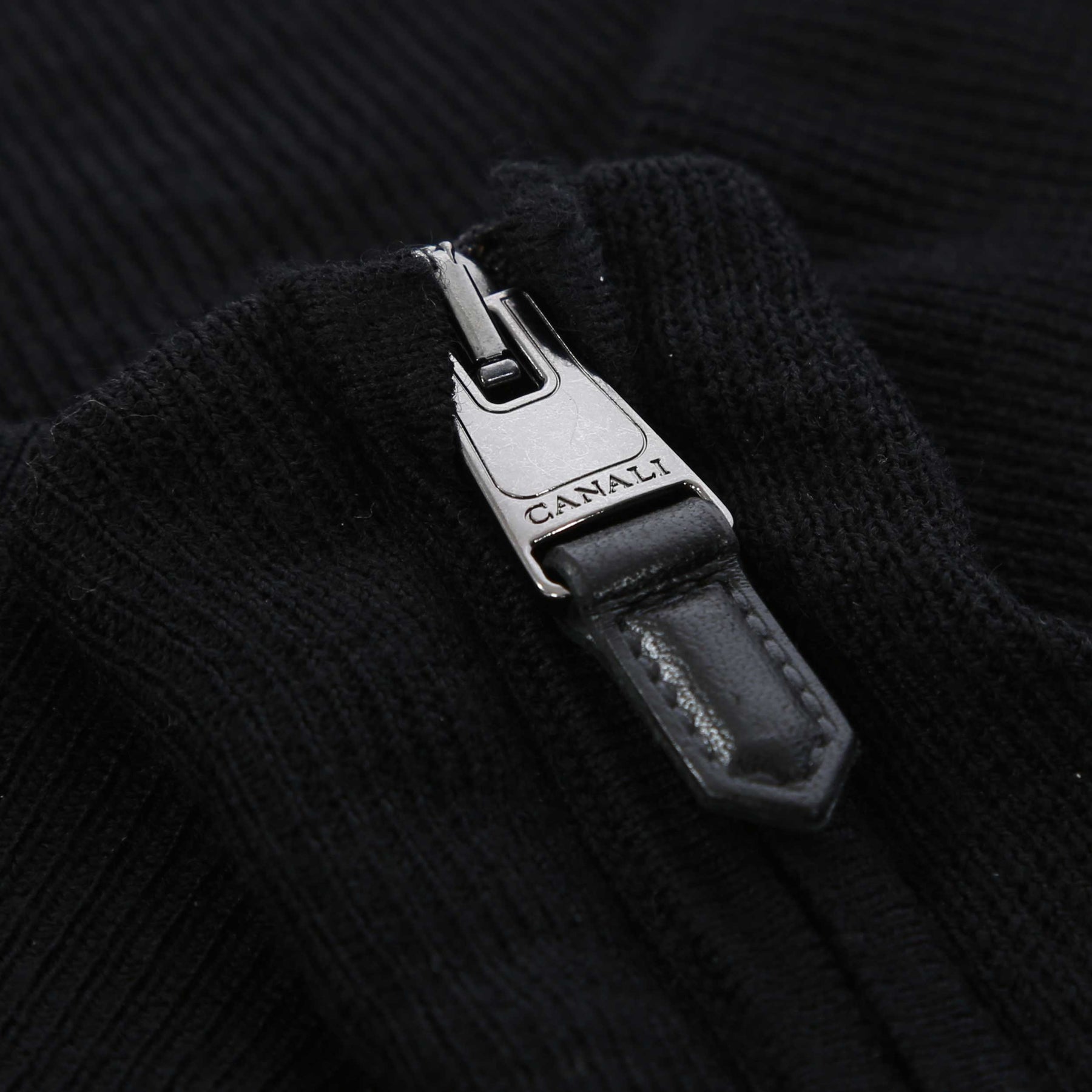 Canali 1/4 Zip Knitwear in Black. Elevate your seasonal wardrobe with our meticulously crafted long-sleeved mock turtleneck featuring extra-fine pure merino wool. Our carefully designed piece boasts a refined touch, accentuated by a convenient zip and ribbed details. Embodying a well-groomed casual style, it's the ideal addition for the detail-oriented man seeking timeless sophistication. Crafted in Italy with precision and expertise.