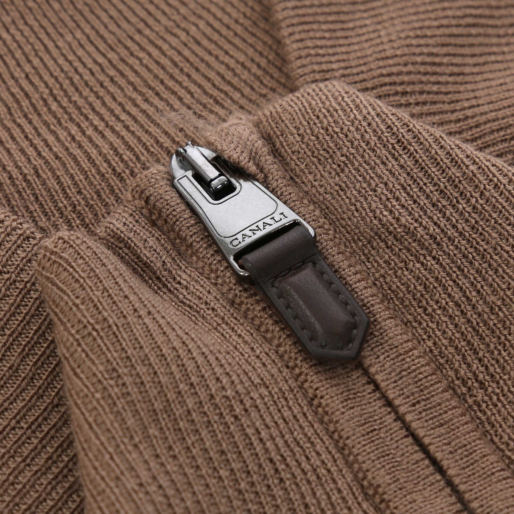 Canali 1/4 Zip Knitwear in Cappuccino. Elevate your seasonal wardrobe with our meticulously crafted long-sleeved mock turtleneck featuring extra-fine pure merino wool. Our carefully designed piece boasts a refined touch, accentuated by a convenient zip and ribbed details. Embodying a well-groomed casual style, it's the ideal addition for the detail-oriented man seeking timeless sophistication. Crafted in Italy with precision and expertise.