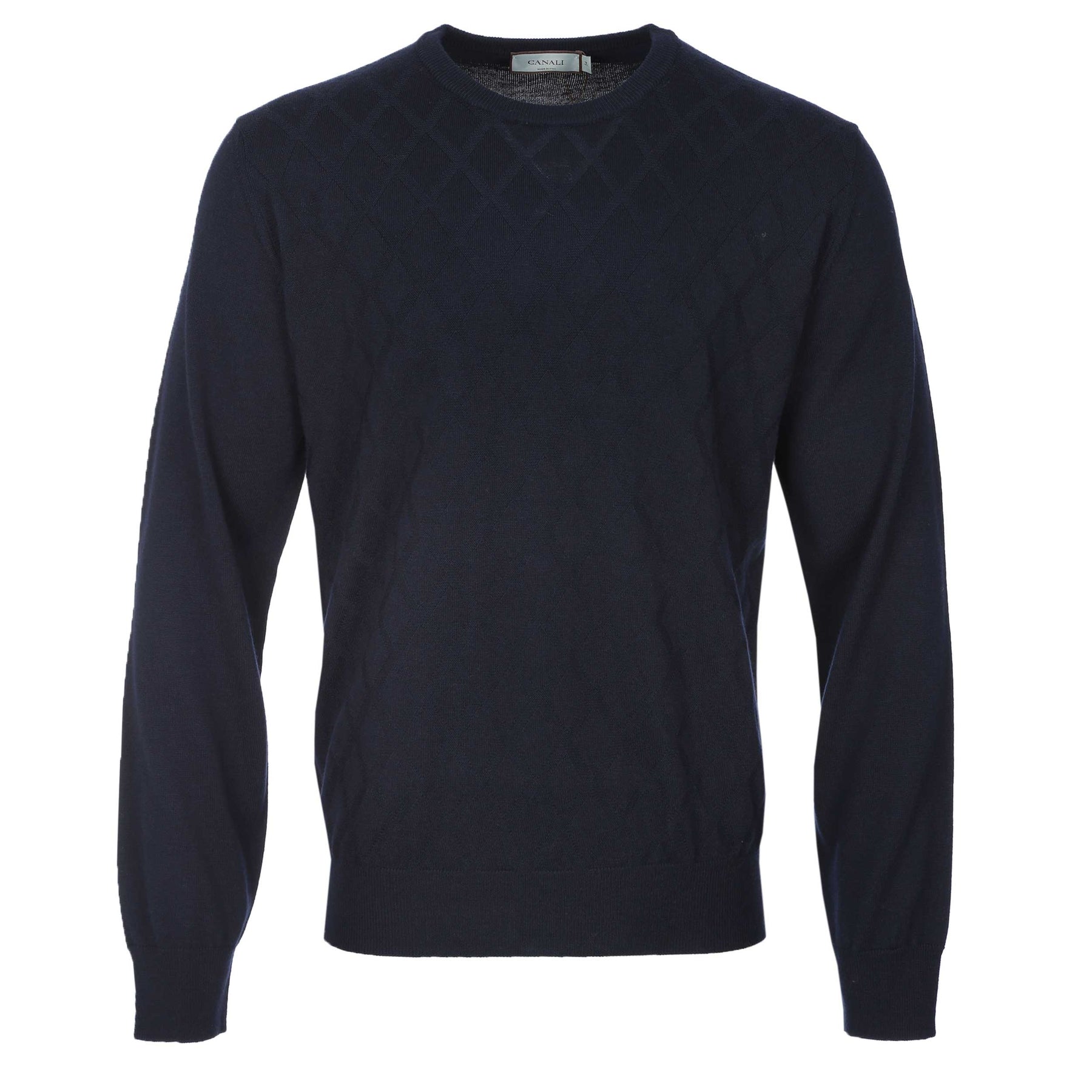Canali Crew Neck Diamond Print Knitwear in Navy