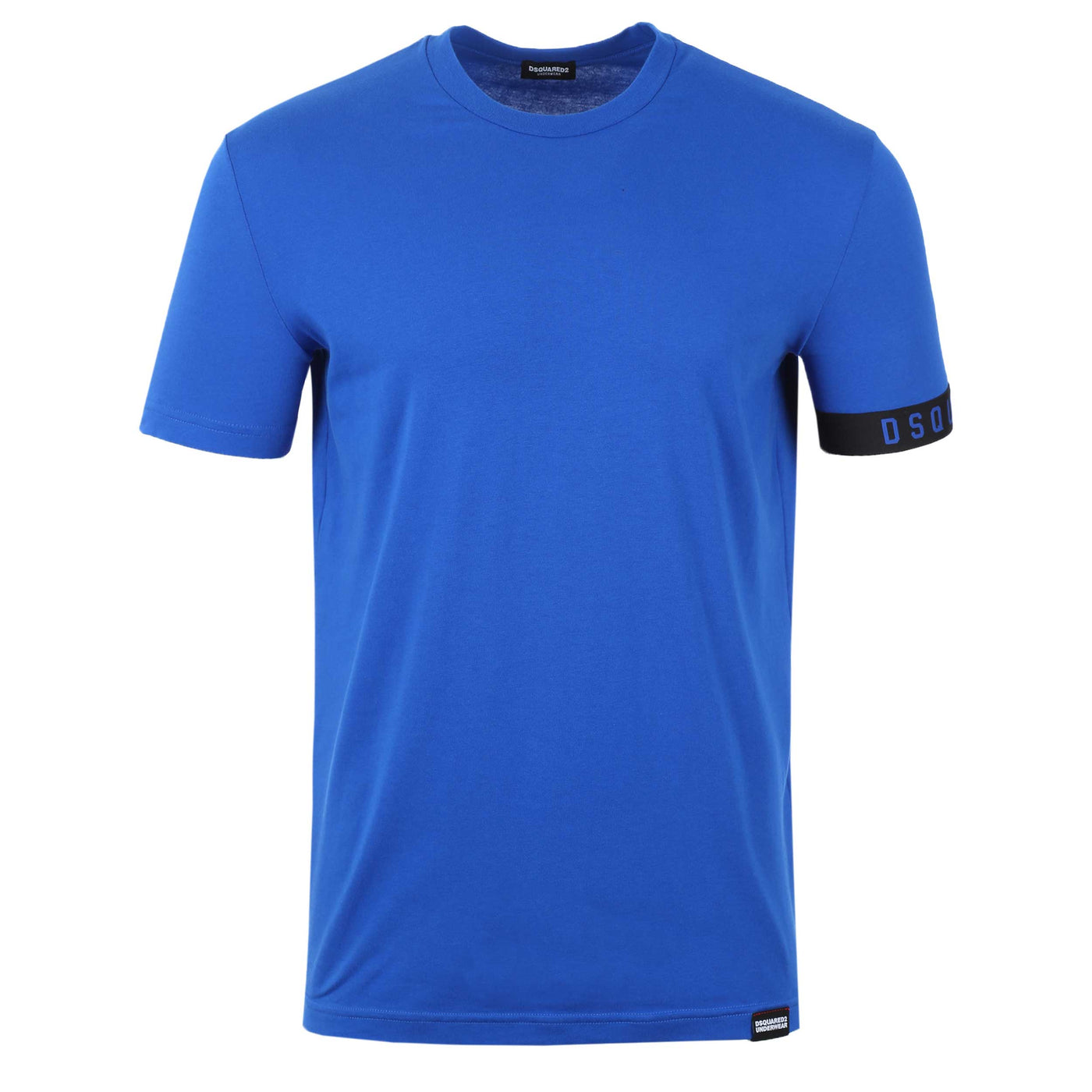 Dsquared2 Arm Band Logo T Shirt in Blue Black. A slim fit T-Shirt by Dsquared2. Featuring a crew neck and short sleeves. With contrasting black band to the leftsleeve, branded with the Dsquared2 logo. A perfect everyday t-shirt.