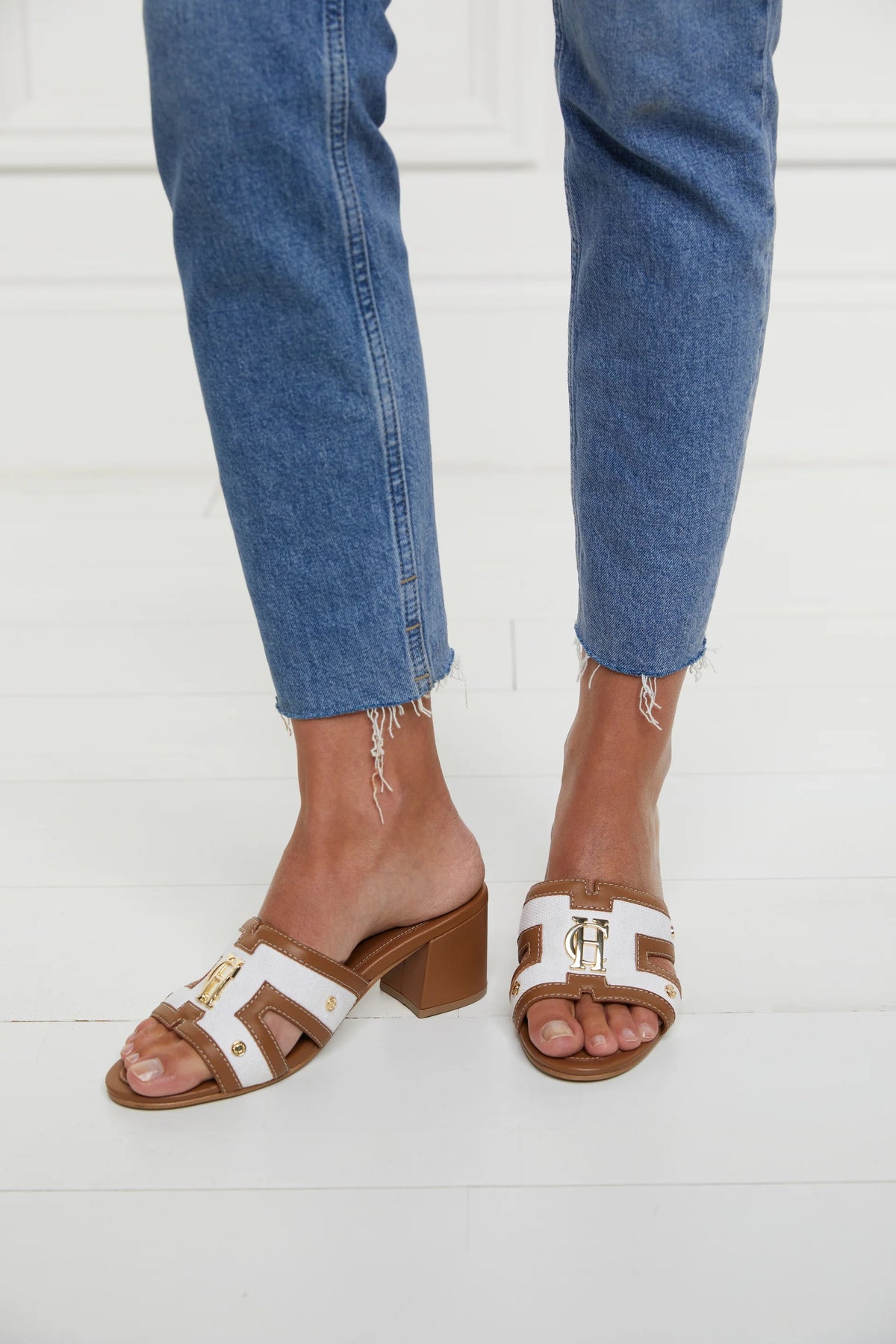 Holland Cooper Monogram Mule Ladies Heel Slide in Tan Canvas