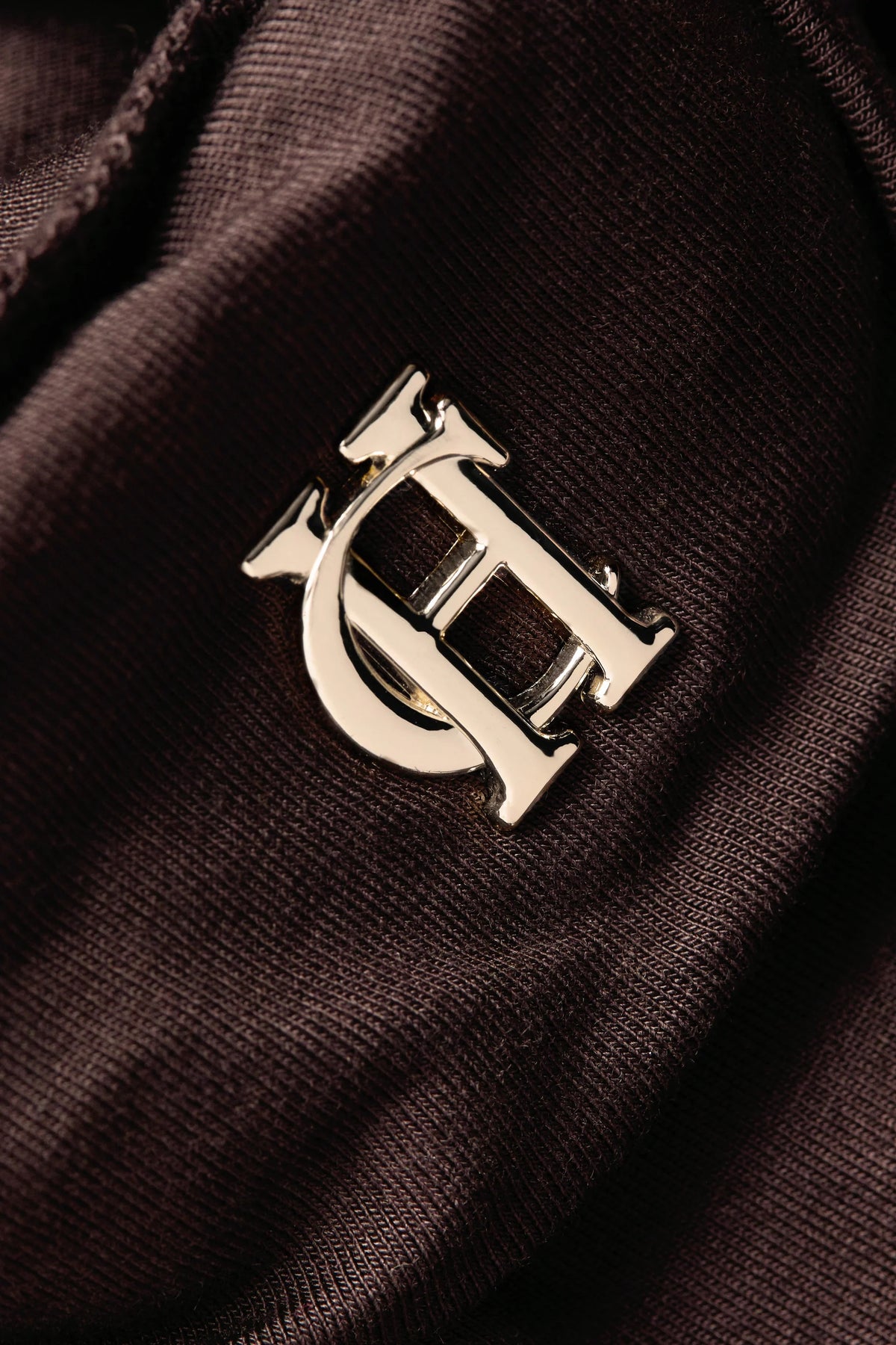 Holland Cooper Paige Roll Neck in Chocolate. Roll neck by Holland Cooper. This long roll neck and is designed for a slim fit and comes with a ruched neck. Holland Cooper signature branding to the neck. Concealed zip to the back to ensure a streamline fit.