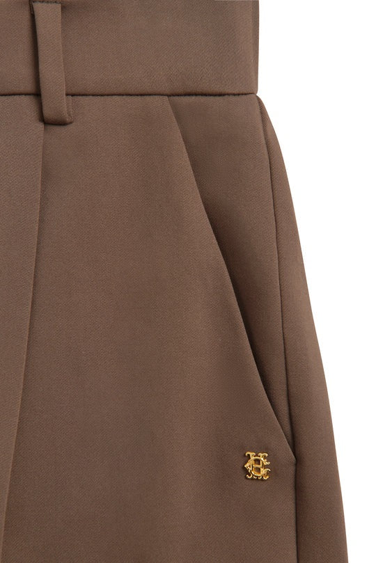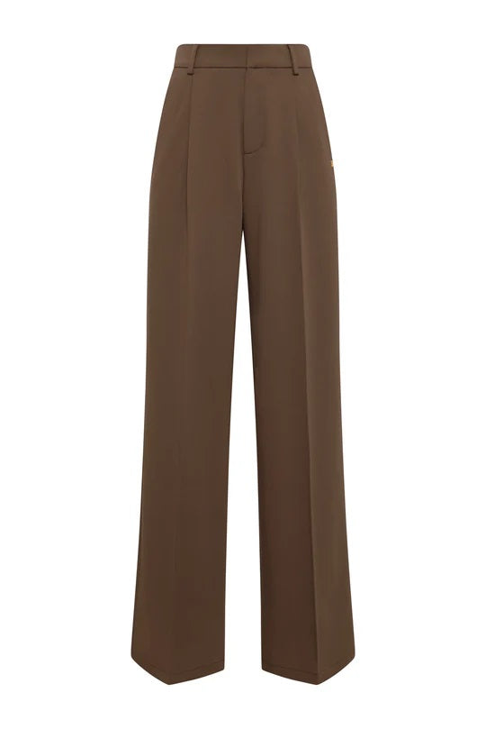 Holland Cooper Pleated Wide Leg Trouser in Mocha