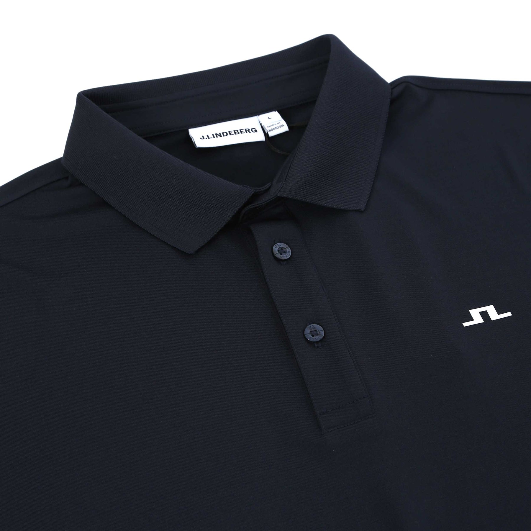 J.Lindeberg Bridge Polo Shirt in JL Navy. A regular fit polo shirt by J.Lindeberg. This polo shirt is constructed from a stretchable TX jersey fabric. This lightweight polo shirt has moisture-wicking technology and 4 way stretch properties. Printed tramline to the chest with the J.Lindeberg bridge logo. 3 button fastening placket with a flat knit collar. Rubber J.Lindeberg logo to the nape of the polo shirt.