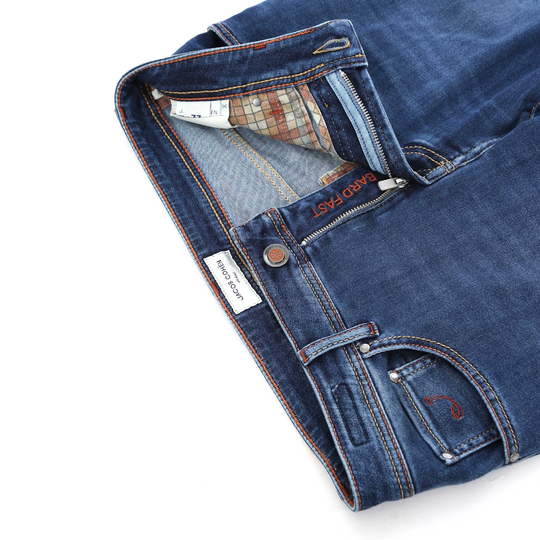 Jacob Cohen Bard Zip Tan Badge Jean in Mid Blue Denim