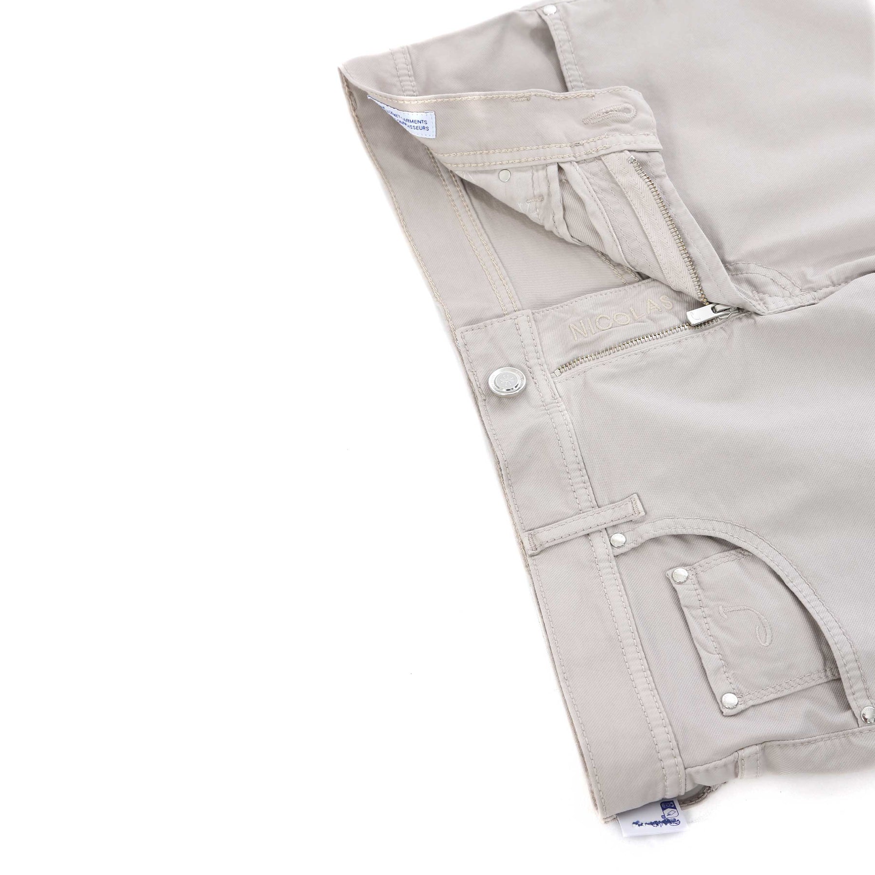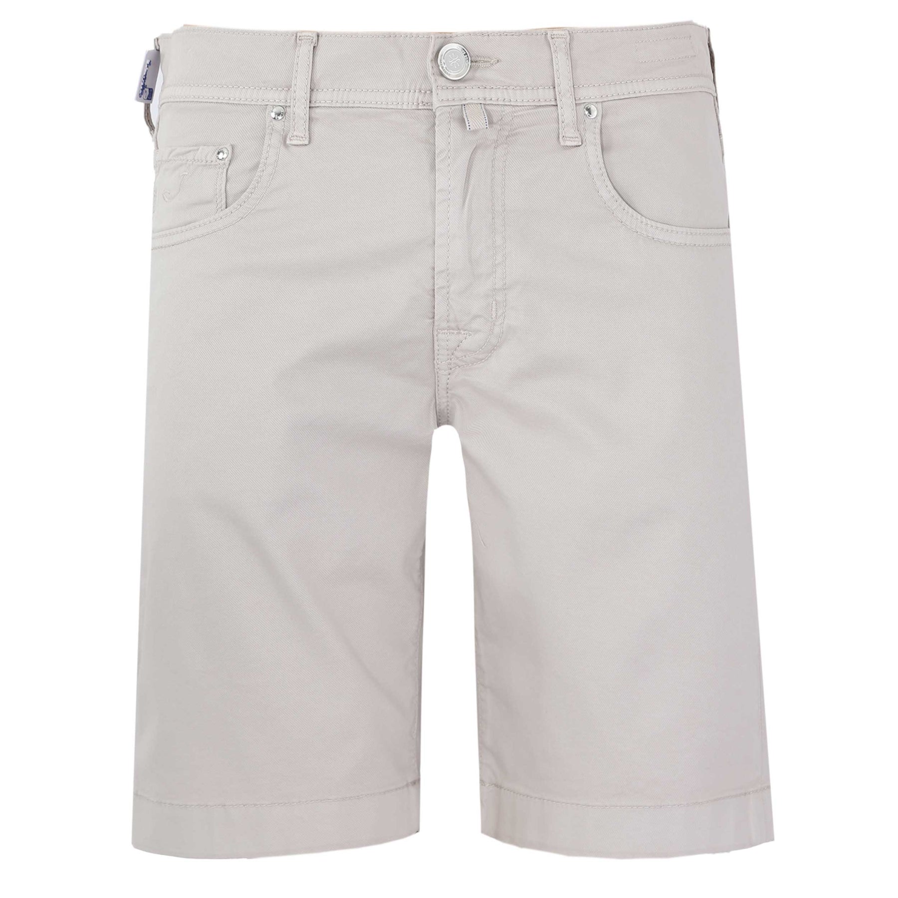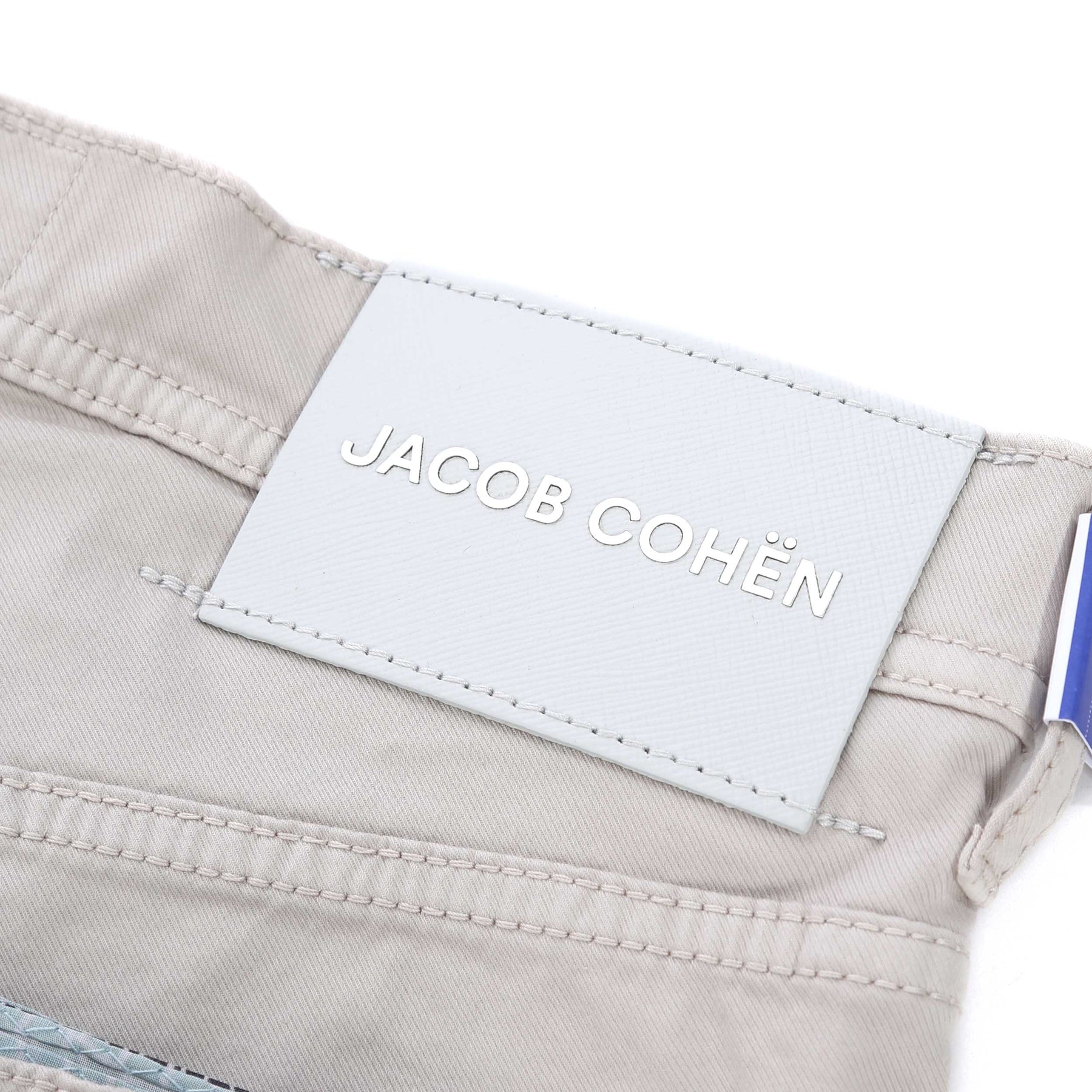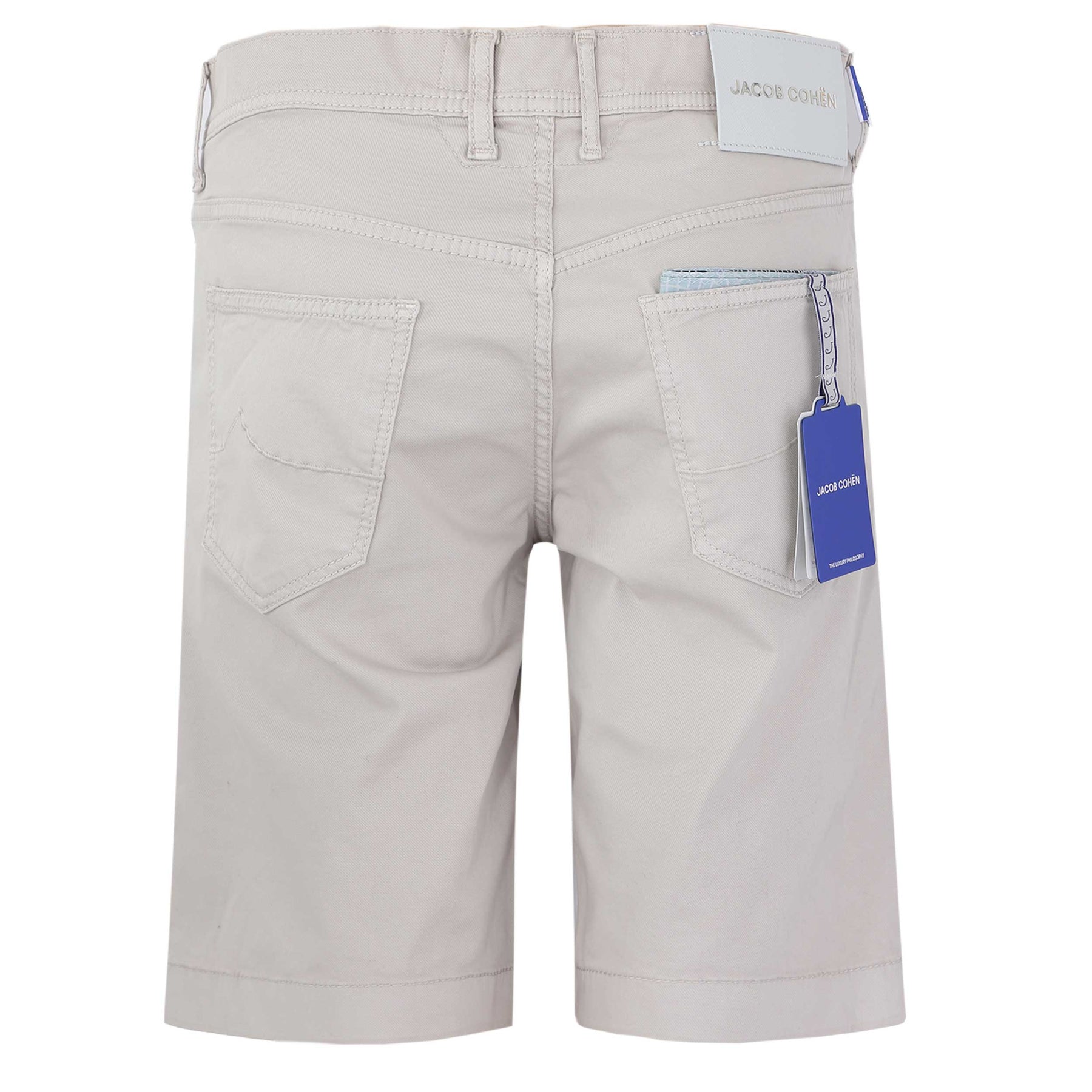 Jacob Cohen Nicholas Short in Beige. A high quality, cotton blend short by Jacob Cohen. They feature a 5 pocket jean style and a Jacob Cohen brand badge to the rear. Button and fly zip fastening. Tonal grained leather logo badge to the waistband.