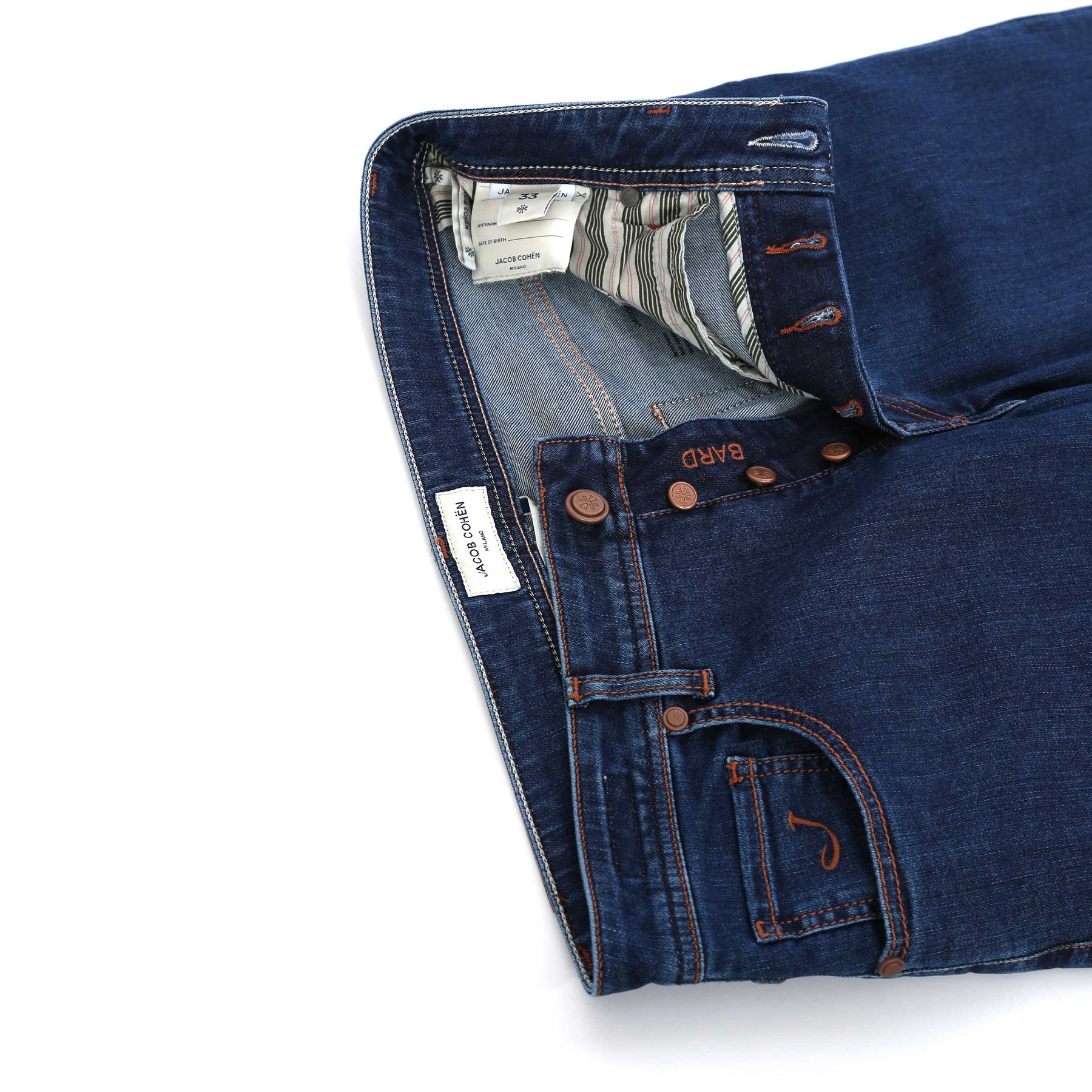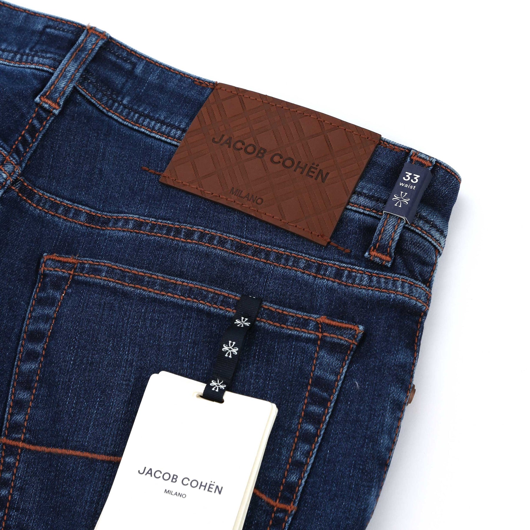 Every aspect of the jean is meticulously crafted, from the premium materials used to the hand-finished detailing. The standout feature of this jean is the tan leather badge on the rear pocket, a hallmark of Jacob Cohen's commitment to quality and originality. This badge not only enhances the aesthetic but also signifies authenticity and luxury.