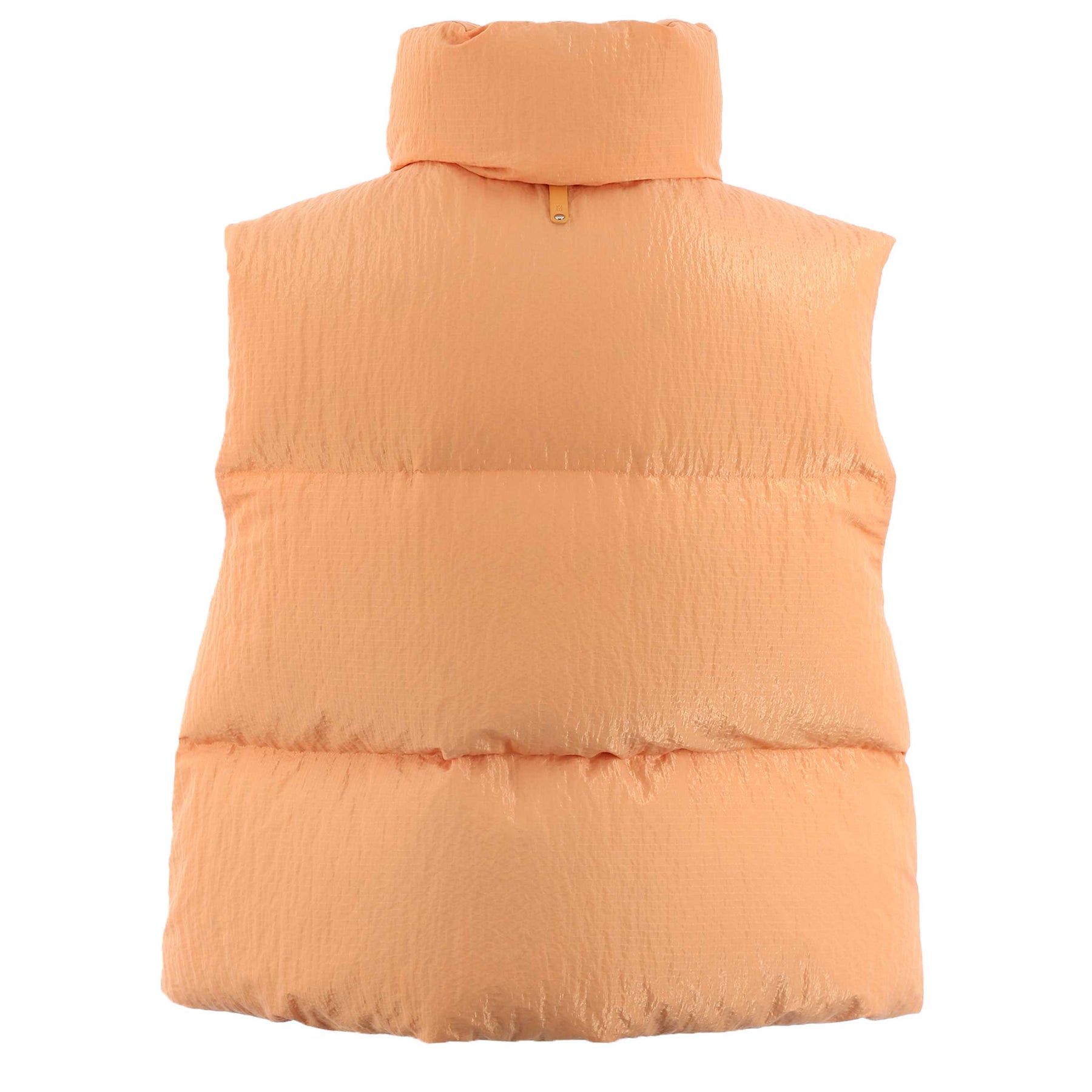 Mackage Naki Ladies Gilet in Smoke Orange. Oversized gilety by Mackage. Lightweight gilet constructed from a tactical ripstop fabric. NAKI features a stand collar and insulated zip waist pockets, delivering protective warmth on the chilliest days. It is water resistant and repellent, while the breathable fabric prevents overheating. Mackage logo badge to the chest.