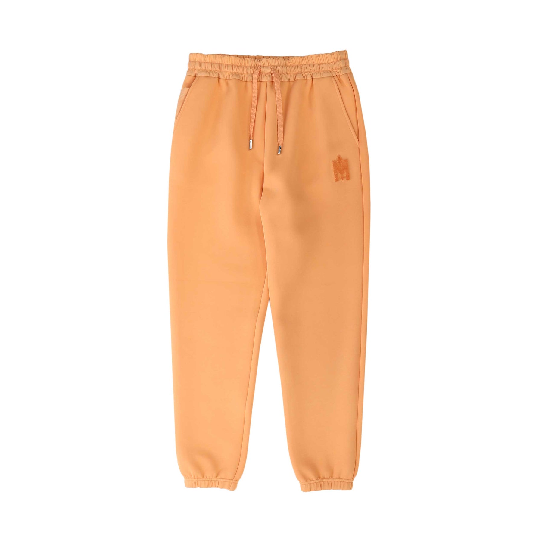 Mackage Nev Sweatpant in Smoke Orange. Mackage sweatpant in a semi-fitted fit with elasticated bungee ankle cuffs. Waistband features drawstring. Tonal Mackage logo. Two slash side pockets. The perfect casual sweatpant.