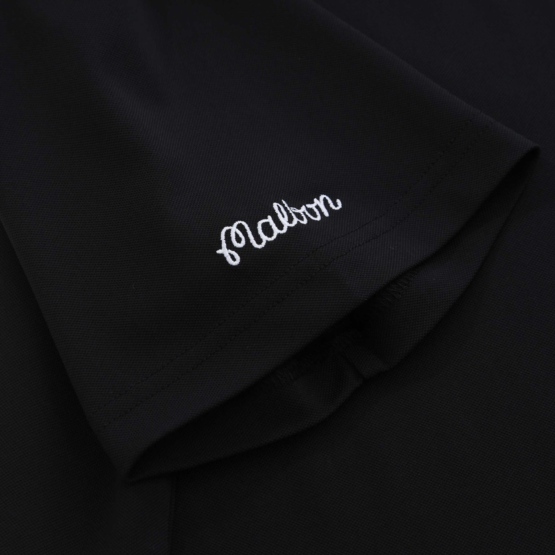 Malbon Fairway Baldwin Polo Shirt in Black. Polo shirt by Malbon. The Fairway Baldwin polo shirt arrives with a 2 button fastening placket and a soft point collar. Stretch properties rto the polo shirt. Embroidered Malbon logos to the chest and right sleeve. Finished with a Malbon logo tab to the side seam.
