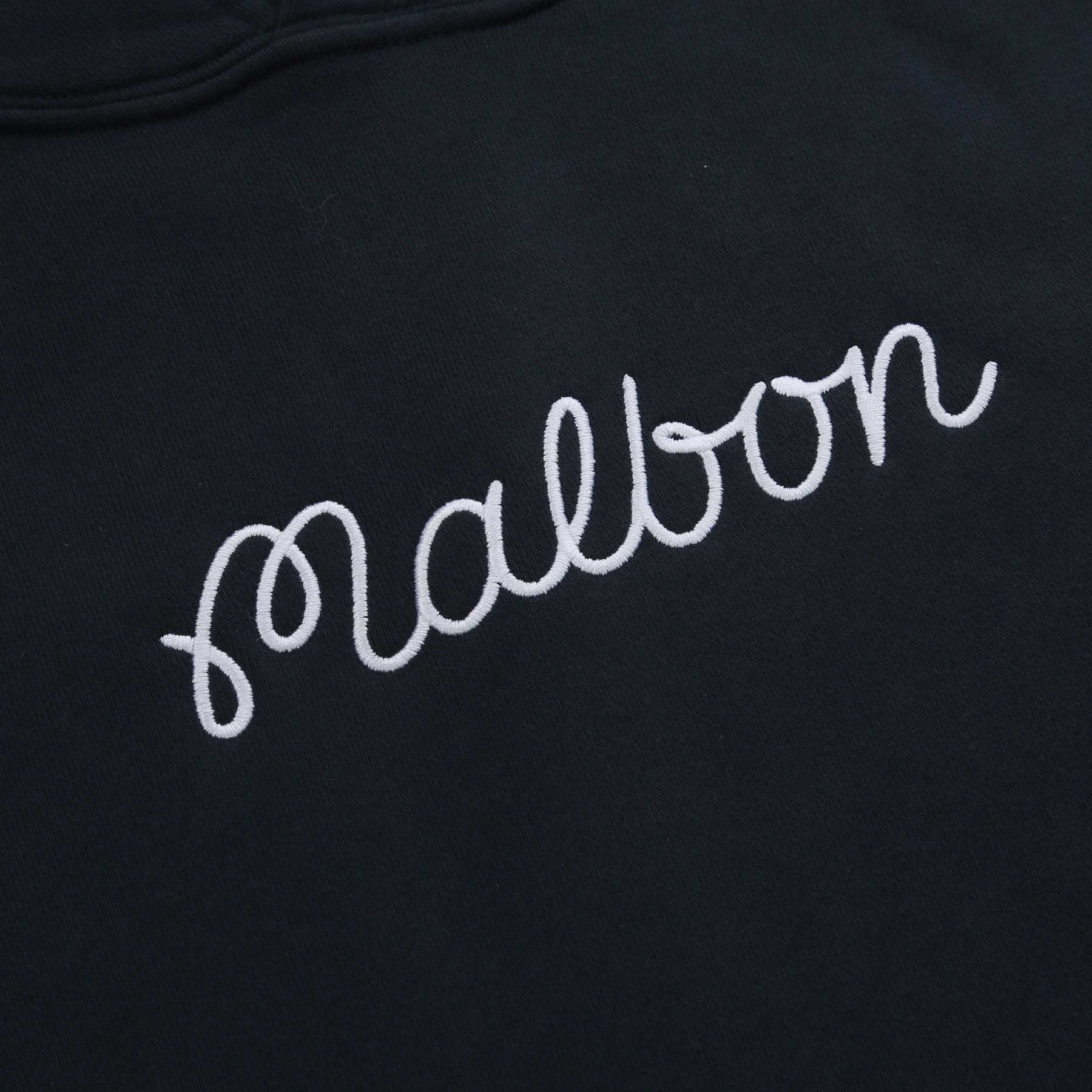 Malbon Fesque Hoodie Sweatshirt in Navy. Hoodie sweatshirt by Malbon. This over the head sweatshirt has a contrasting Malbon script logo embroidered to the chest and right cuff. Kangaroo pocket to the front. Ribbed cuff and waistband.