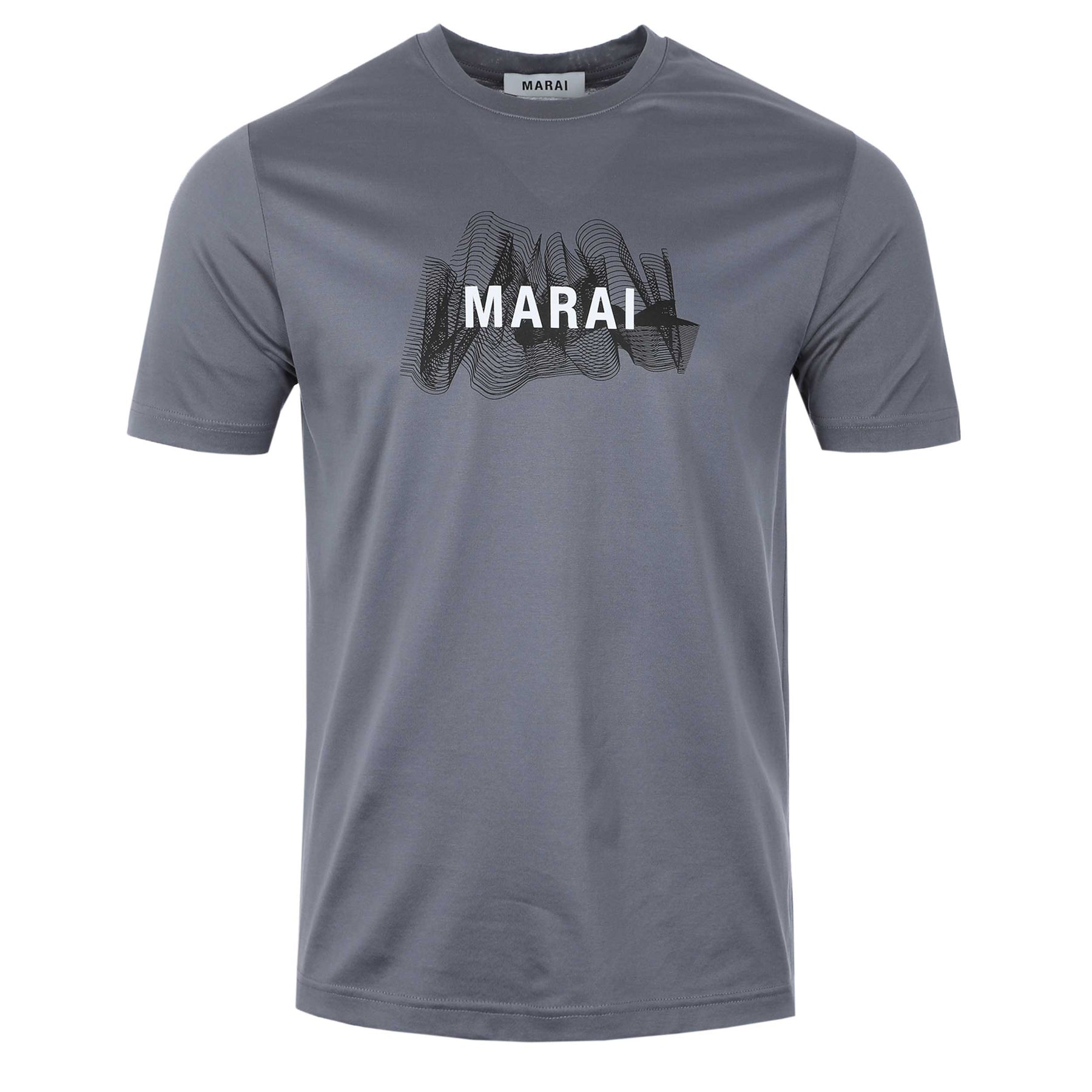Marai Ripple Print T Shirt in Turbulence. T Shirt by Marai. This t shirt arrives with the classic crew neck and short sleeve styling. Constructed from 100% mercerised cotton. Printed Marai ripple logo design to the front of the t shirt.