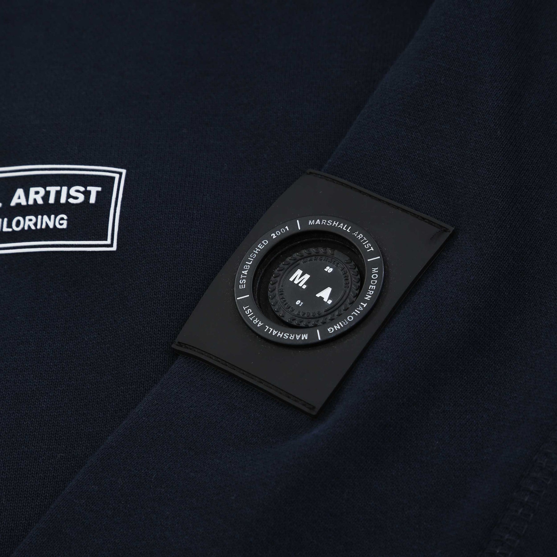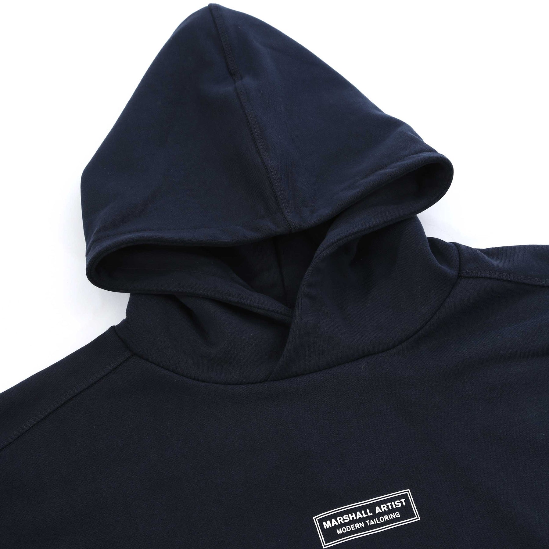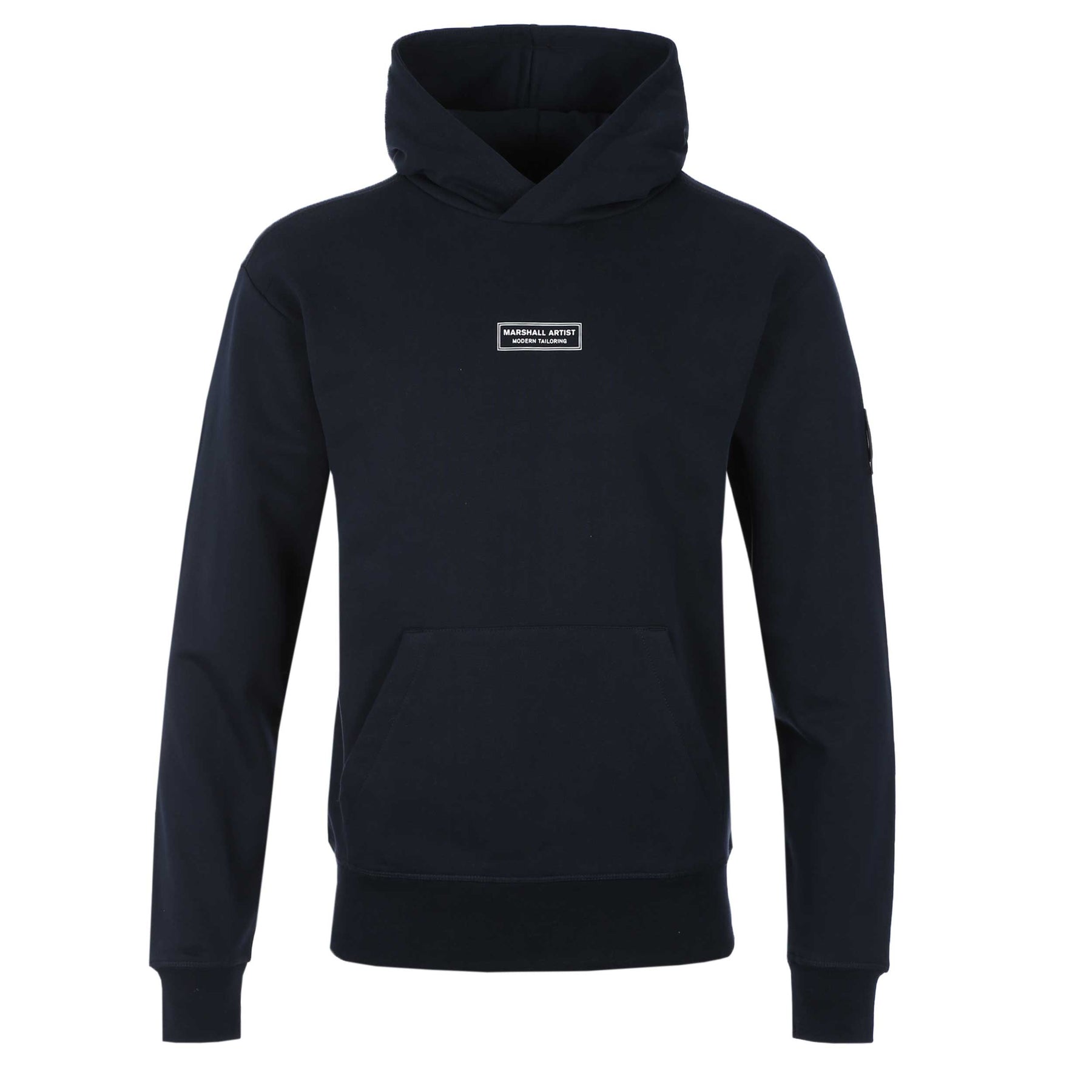 Marshall Artist Siren OTH Hoodie Sweat Top in Navy. Hoodie sweat top by Marshall Artist. A relaxed fit over the head hooded sweat top. Marshall Artist logo badge to the sleeve and branding to the chest. Kangaroo pocket to the front.