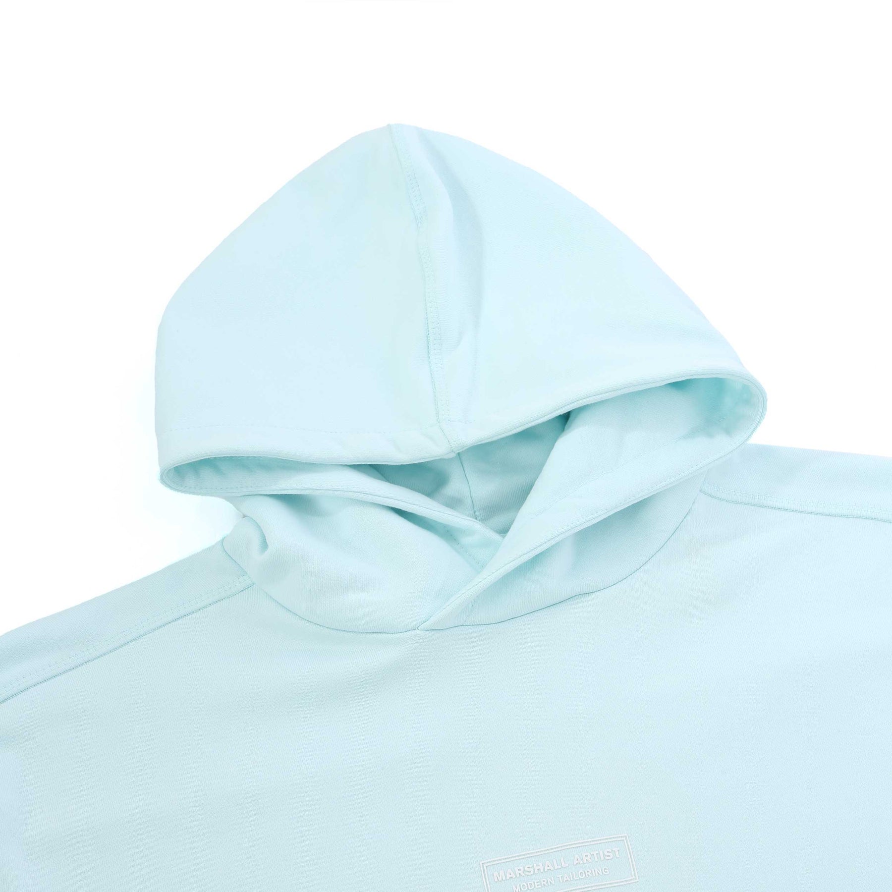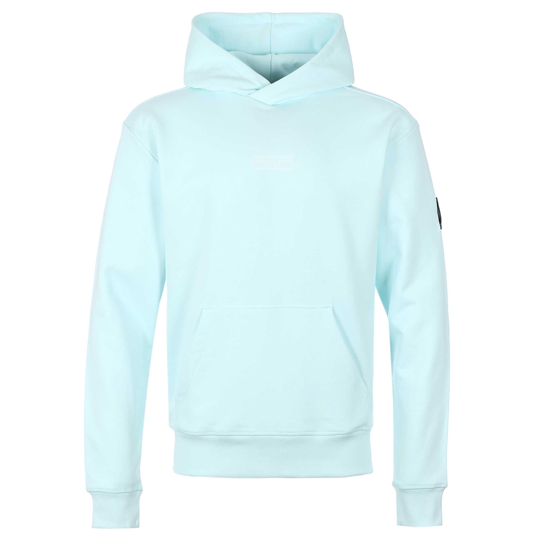 Marshall Artist Siren OTH Hoodie Sweat Top in Sky Blue. Hoodie sweat top by Marshall Artist. A relaxed fit over the head hooded sweat top. Marshall Artist logo badge to the sleeve and branding to the chest. Kangaroo pocket to the front.