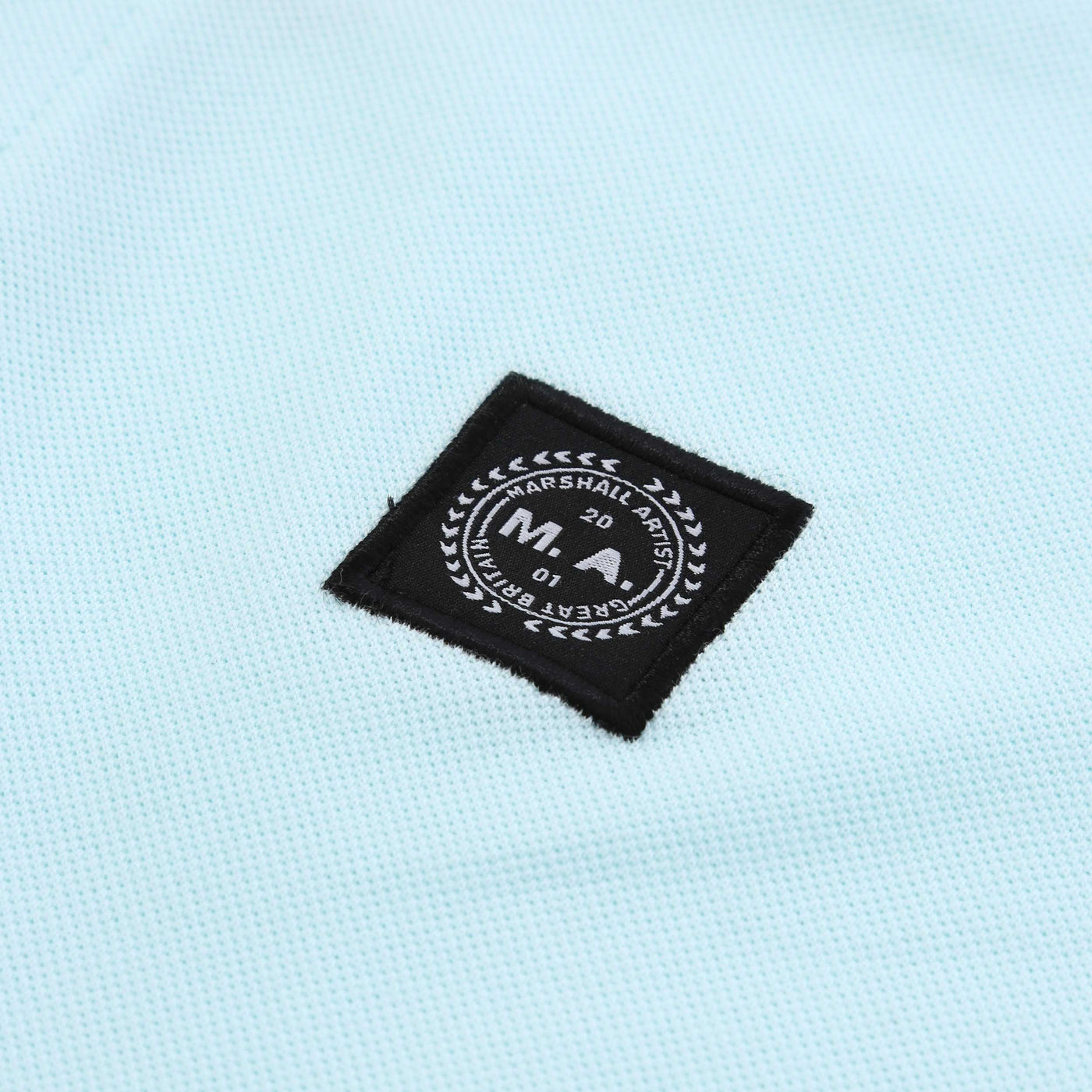 Marshall Artist Siren SS Polo Shirt in Sky Blue. Polo shirt by Marshall Artist. A regular fitting polo shirt with a 2 button fastening placket. Ribbed collar and cuffs. Contrasting colour Marshall Artist embroidered logo to the chest.