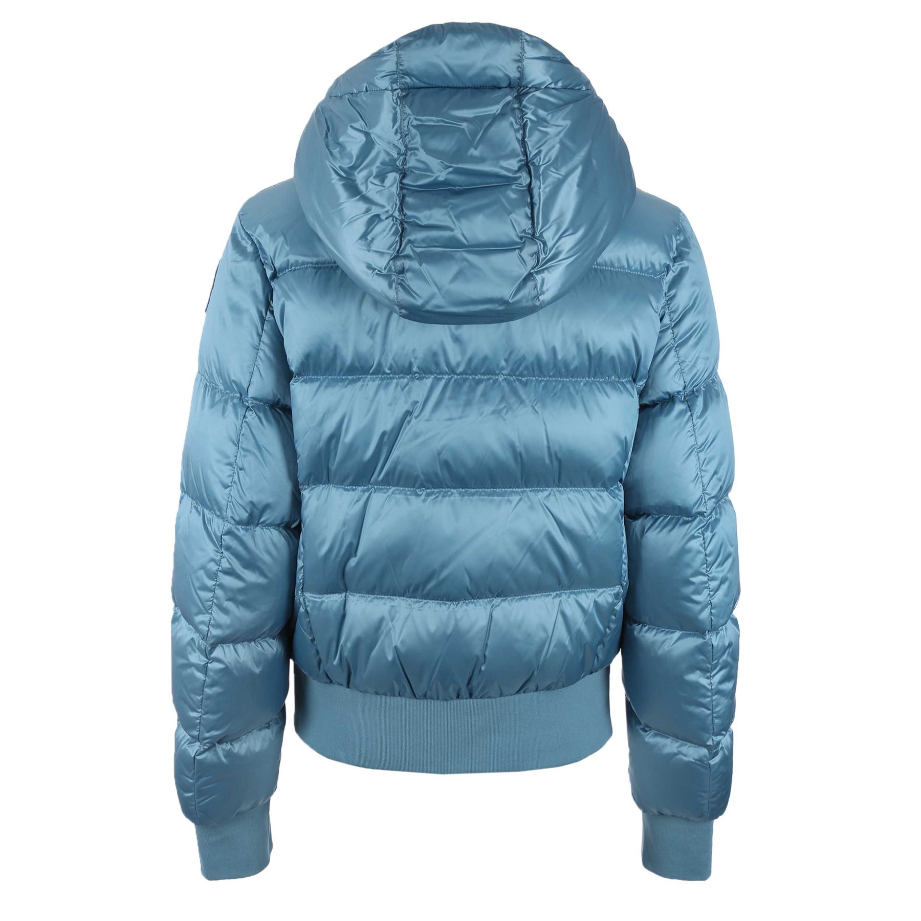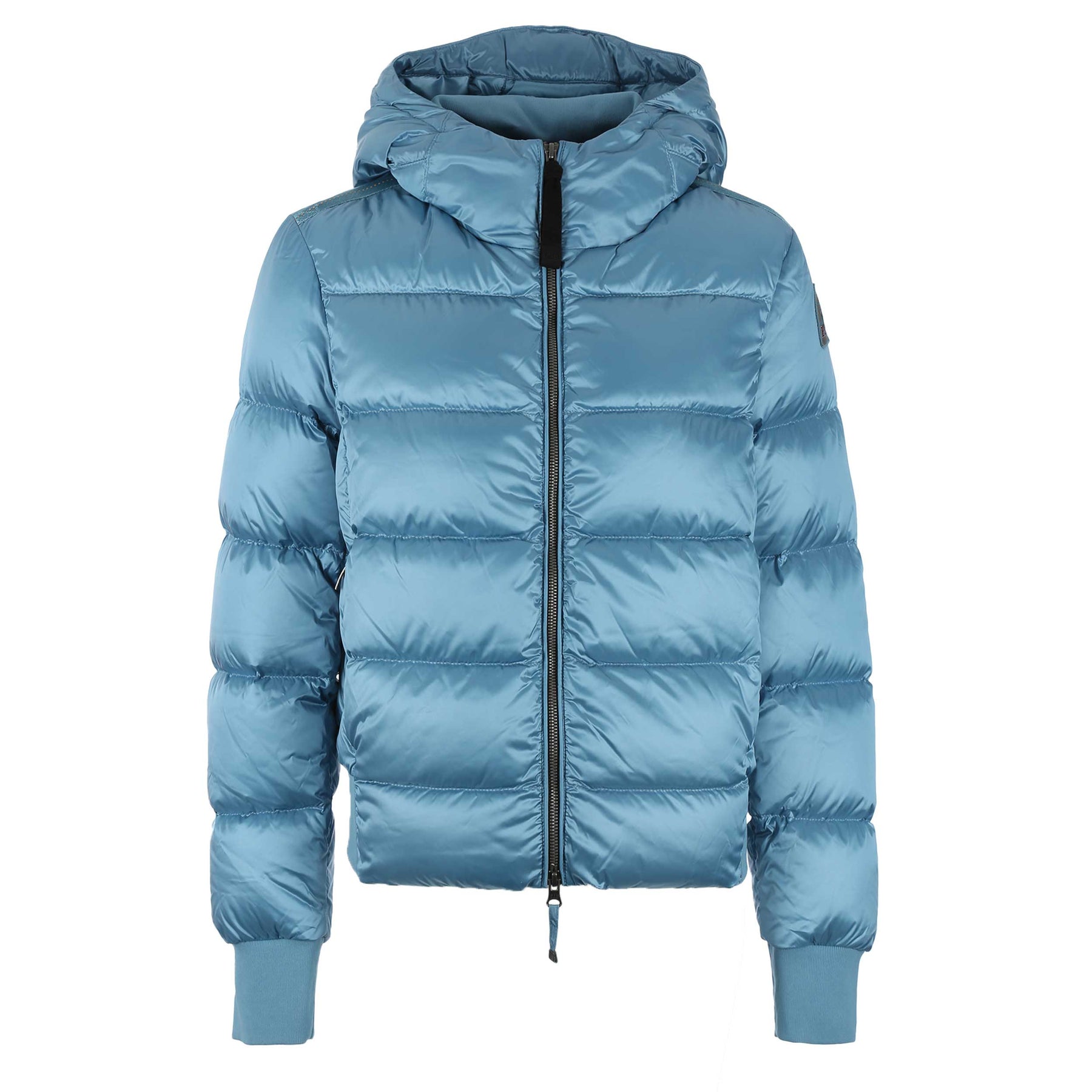 Parajumpers Mariah Ladies Jacket in Alta Marea. This bomber style puffer jacket features a hood. Two zip pockets to the front of the jacket. Parajumpers logo badge to the left sleeve. Finished with ribbed cuffs and rear waistband.