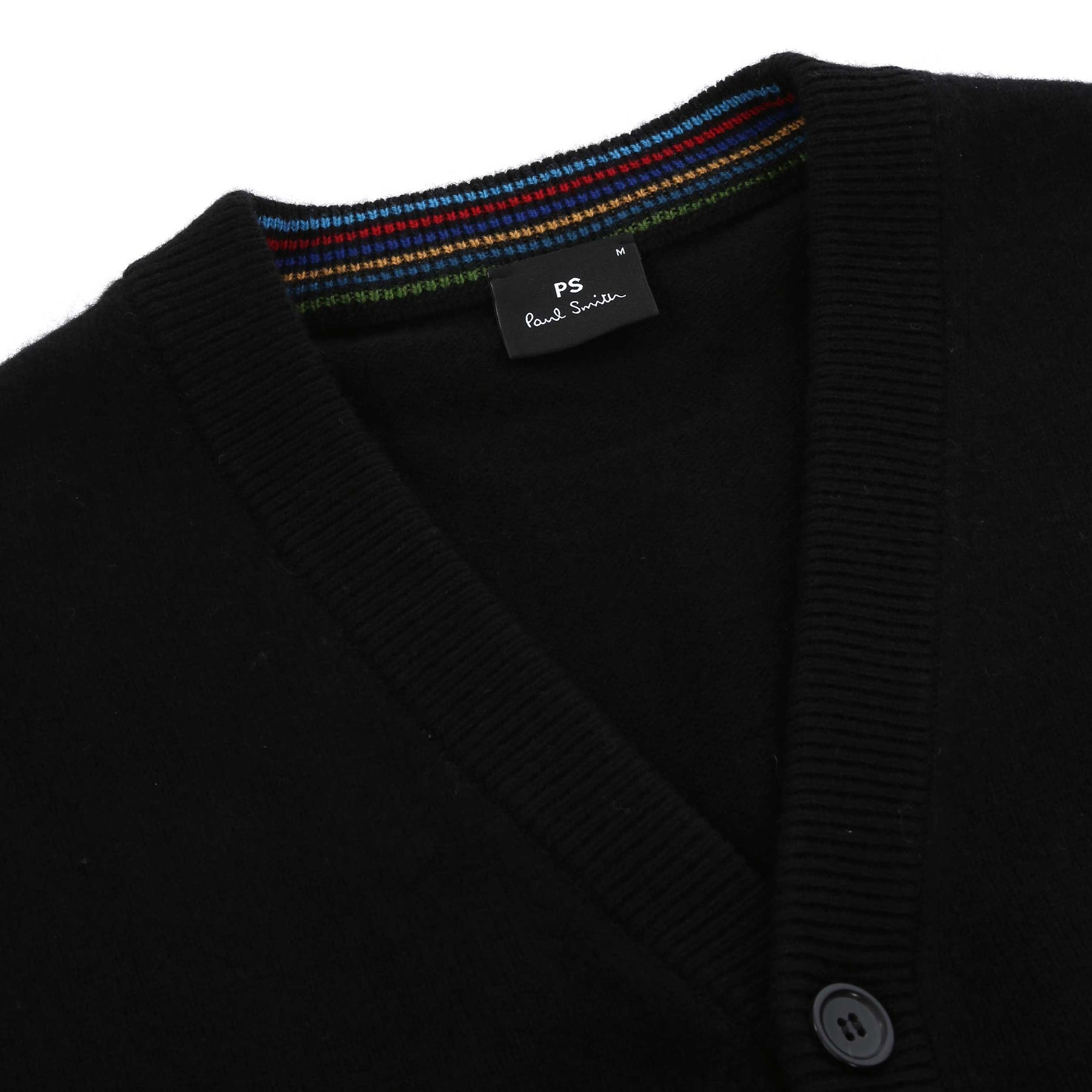 Introducing the Paul Smith Button Through Cardigan, a must-have addition to your wardrobe that expertly combines comfort with timeless style. This luxurious black cardigan is crafted from 100% Merino wool, ensuring warmth and softness against your skin. Designed by the iconic Paul Smith brand, known for its quality craftsmanship and vibrant designs, this cardigan features a classic button-up silhouette that effortlessly enhances any outfit.