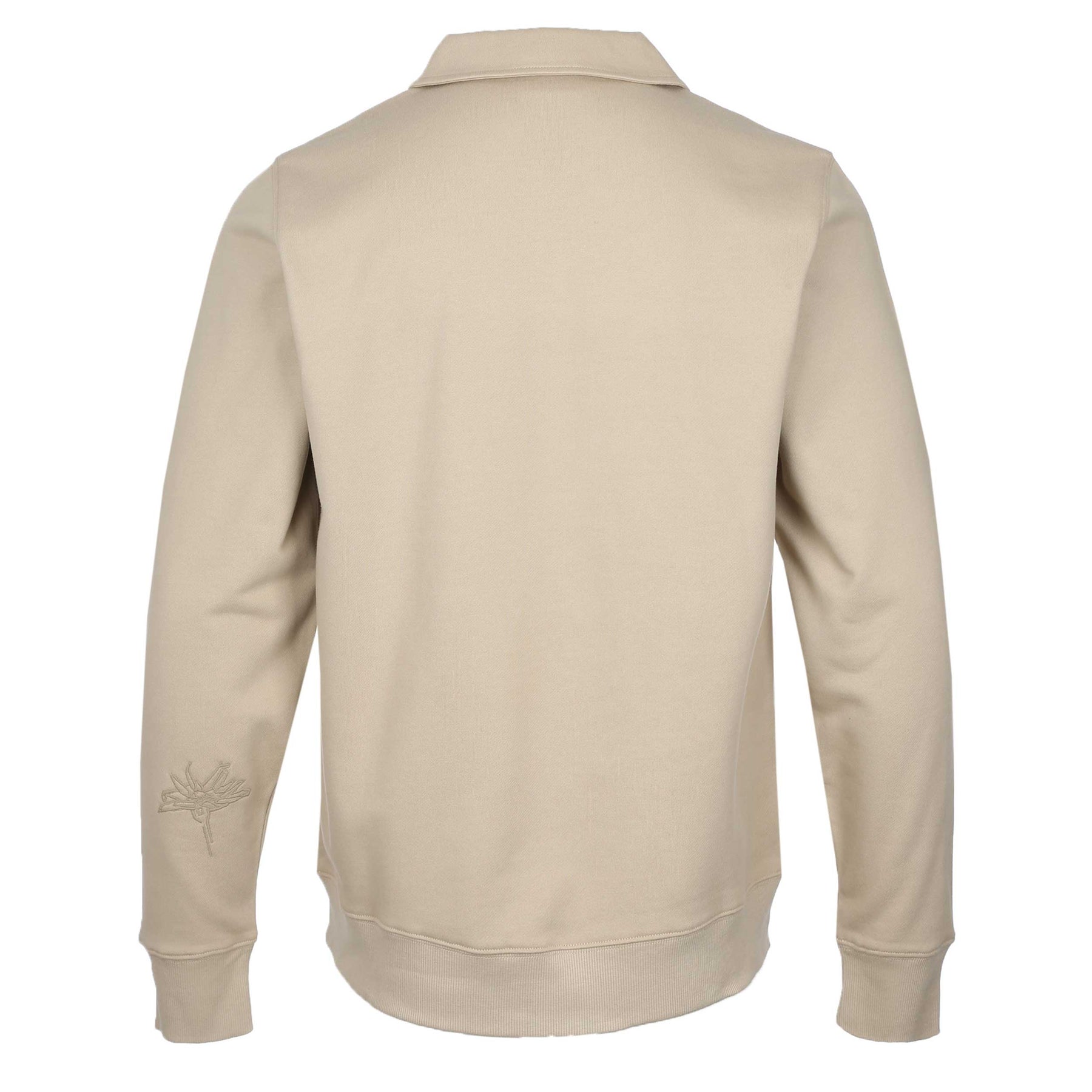 Paul Smith Half Zip Collar Sweat Top in Camel. A sweat top by Paul Smith. Featuring long sleeves and a half zip fastening. Sweat top with a classic polo style collar. Tonal zebra logo badge to the waist. Embroidery detailing to the left cuff. Finished with a ribbed waistband and cuffs.