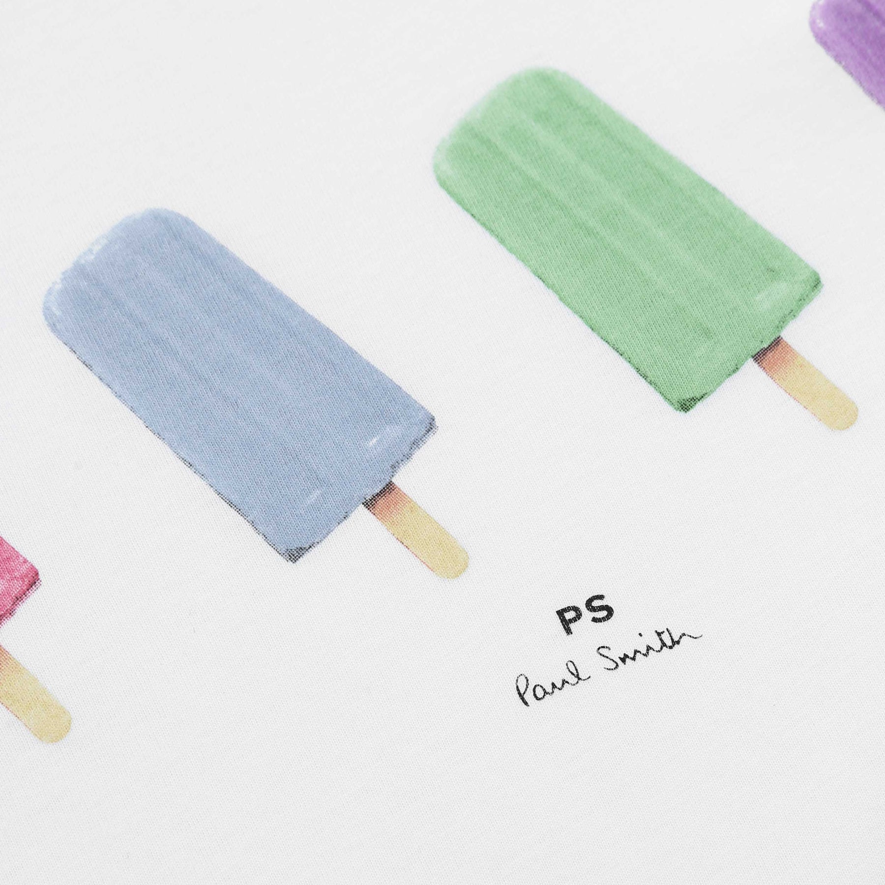 Discover contemporary style with the Paul Smith Lollies T Shirt in White, a striking blend of comfort and fashion-forward design. This exceptional t-shirt exemplifies Paul Smith's unique flair for graphics, making it a standout piece for your casual wardrobe.