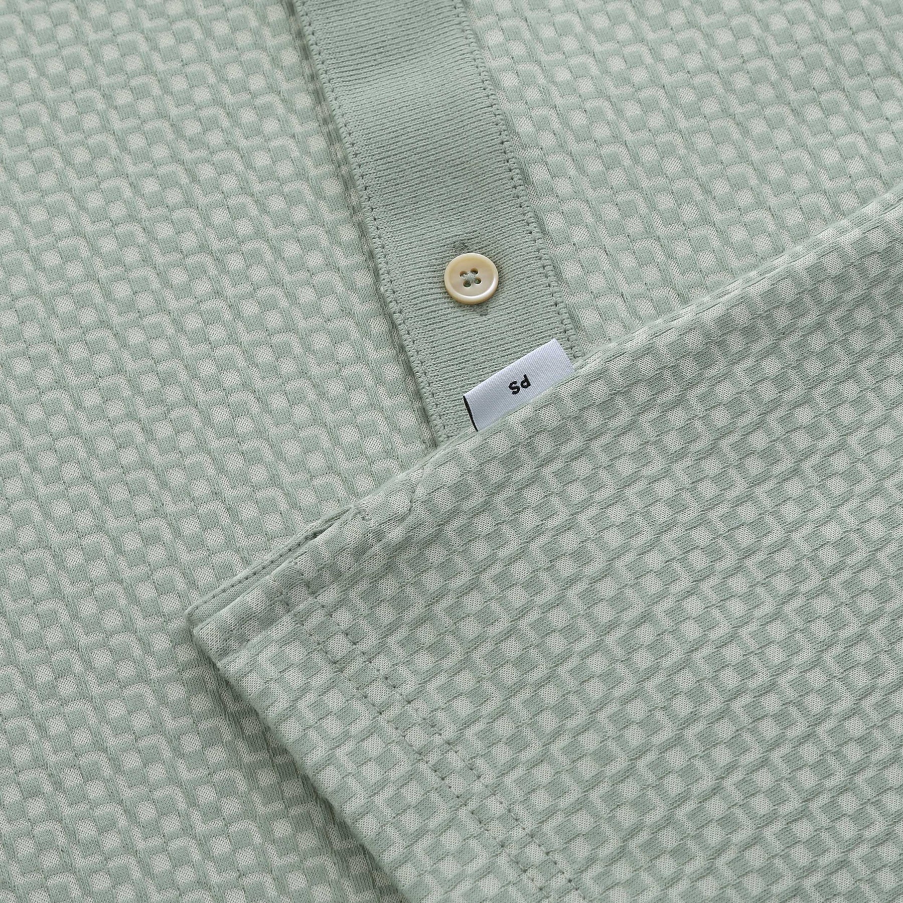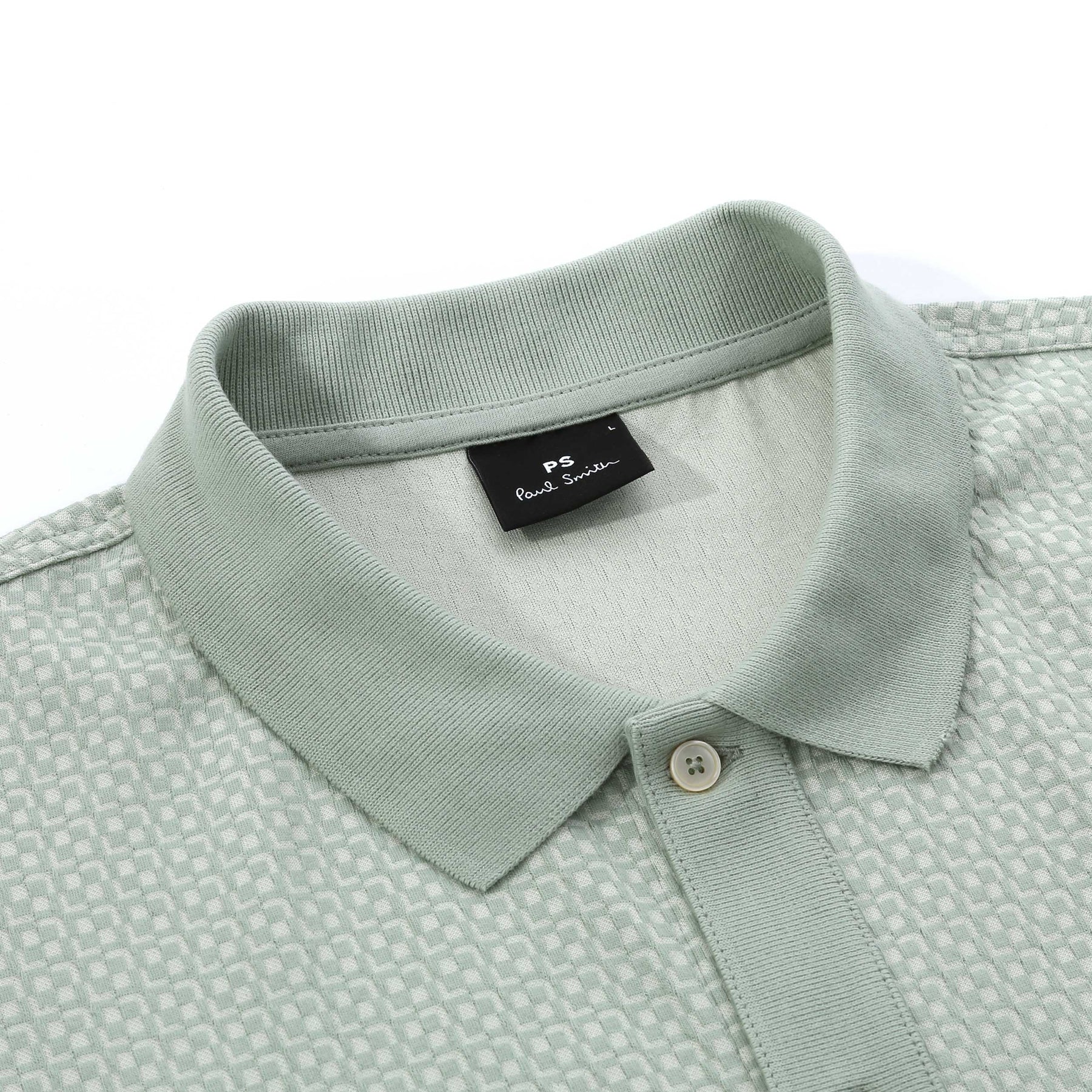 Paul Smith Reg Fit Button Front Polo Shirt in Green. The PS Paul Smith Reg Fit Button Front Polo Shirt in Green arrives blending everyday wearability with elevated detail. Crafted from a soft cotton-blend jersey, it features a textured finish with a subtle pattern throughout for added depth and visual interest. Designed in a regular fit, this short-sleeve polo is finished with a tonal ribbed collar, split side vents for comfort, and a full-length button placket that sharpens the silhouette. A discreet side-seam tag adds a final understated nod to Paul Smith’s signature attention to detail. A versatile polo shirt that works effortlessly with tailoring, denim, or summer layers.
