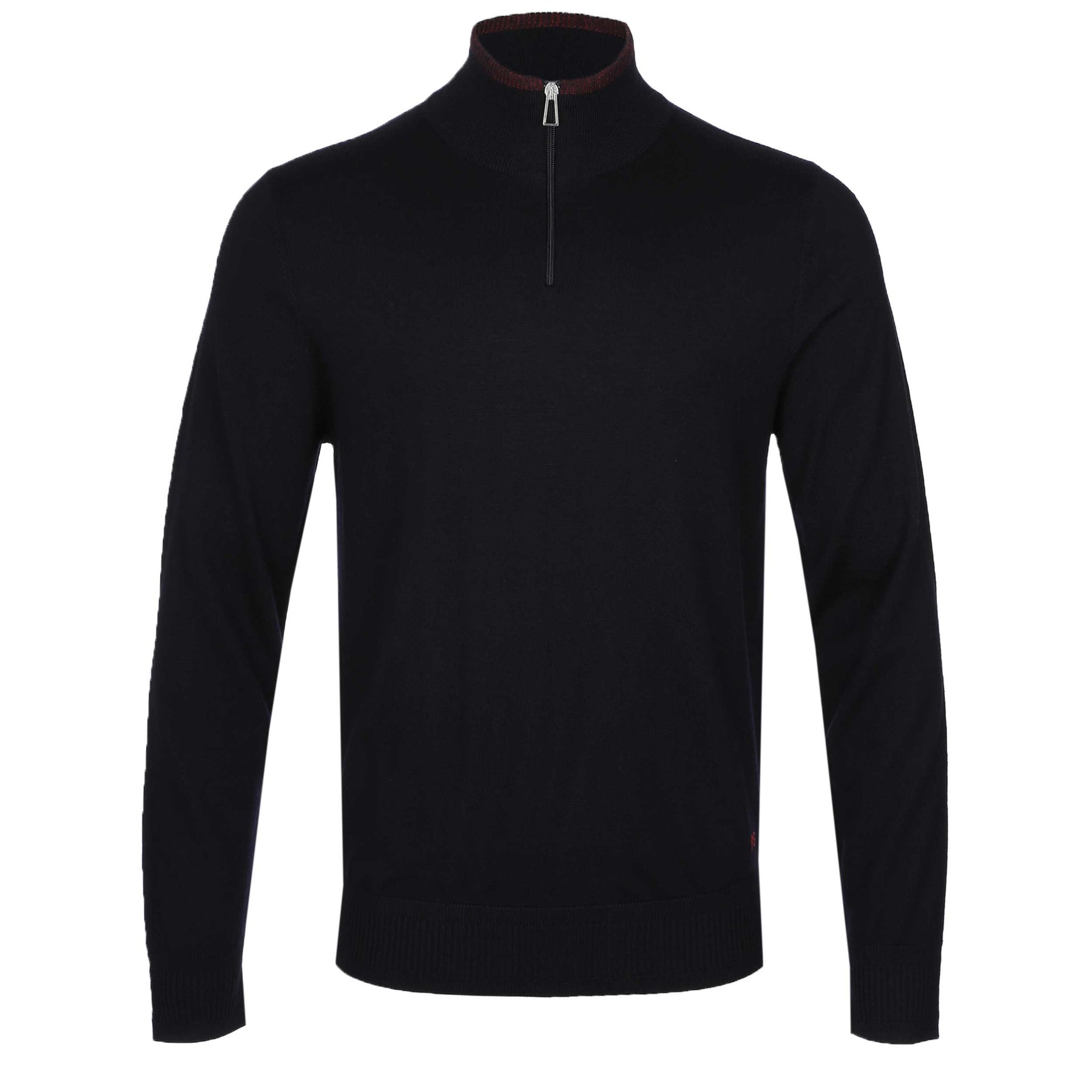 Discover the elegance and sophistication of the Paul Smith Zip Neck Knitwear in Navy. Crafted from 100% premium Merino wool, this stylish knitwear addition embodies both comfort and luxury, making it a perfect choice for the modern gentleman. The rich navy colour enhances its versatility, allowing it to be paired with both formal and casual attire.